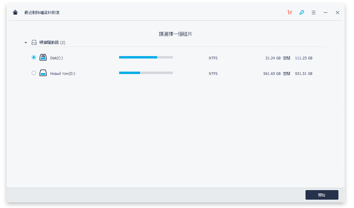 启动复苏的数据恢复软件,选择一个数据丢失的情况下恢复数据。