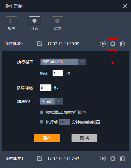 • 脚本录制:支持开机录制、定制录制、过程加速、循环