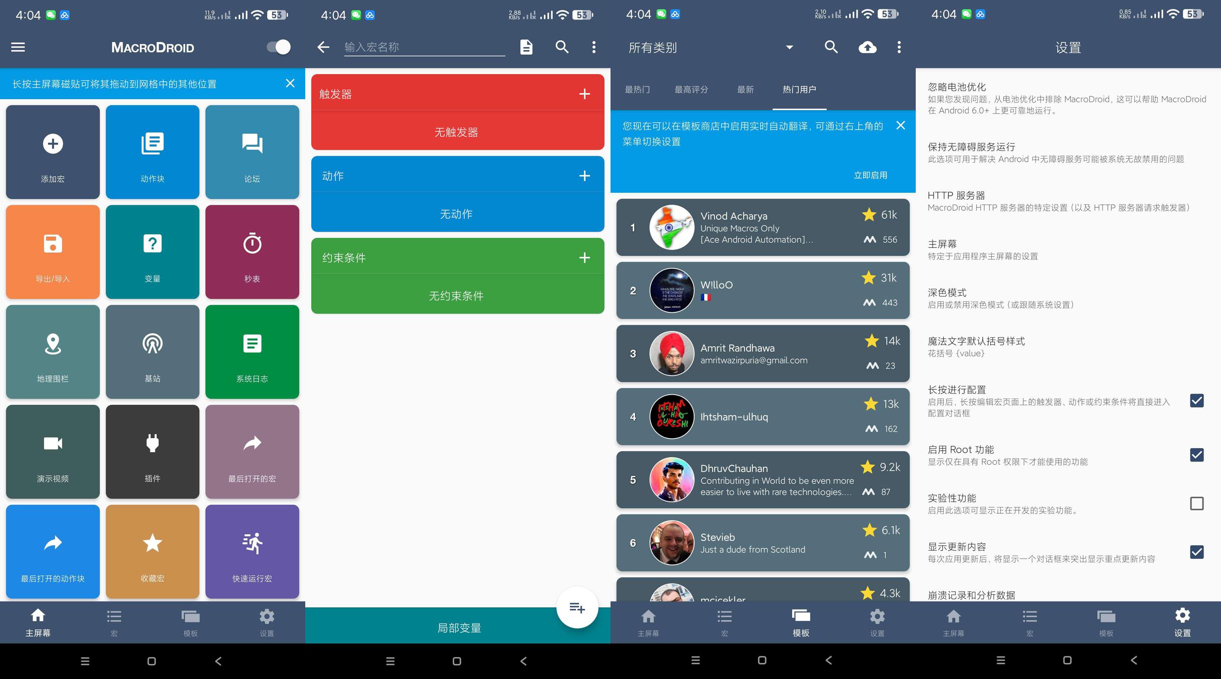 📣【软件介绍】MacroDroid 是一款以直观方式设计的自动化工具,允许用户创建各种“宏”(Macros)。这些宏是由触发器、操作和约束条件组成的小程序,可根据用户的需求执行一系列任务。例如,您可以设置每次连接 Wi-Fi 后自动打开蓝牙,或在电量低于特定水平时关闭后台运行的应用程序。