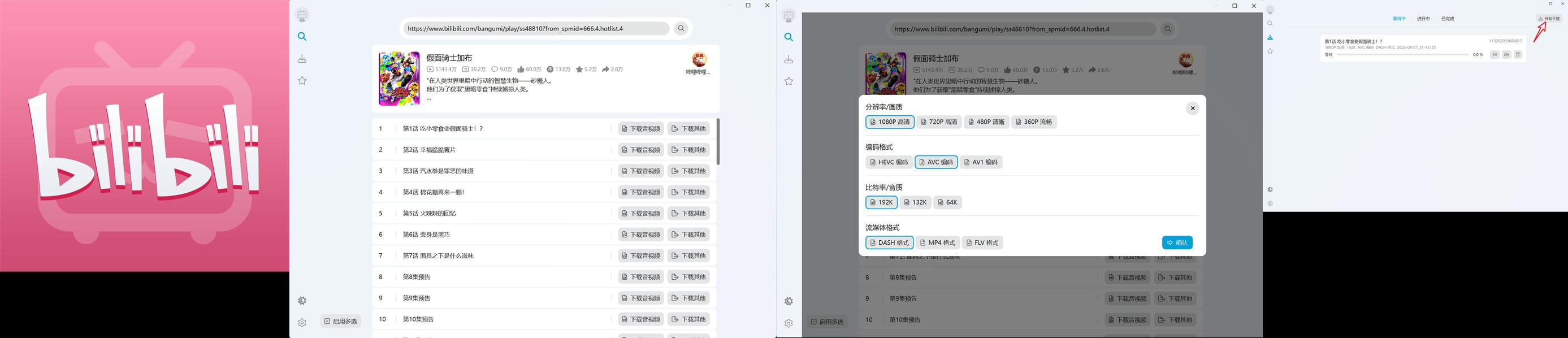 【应用简介】软件支持b站音视频下载,也支持实时弹幕、历史弹幕、封面、字幕、漫画、AI总结等等,其中视频的画质最高支持1080P。