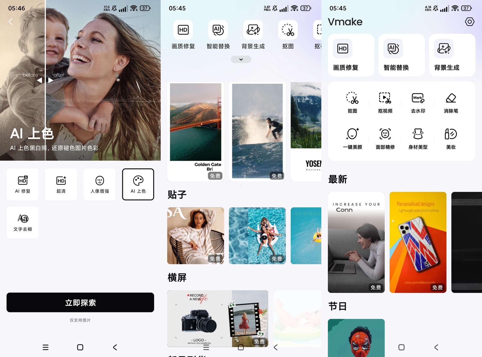 【资源介绍】vmake,AI照片和视频编辑器生成,增强,去背景,去水印,ai模特,物体消除,商品图