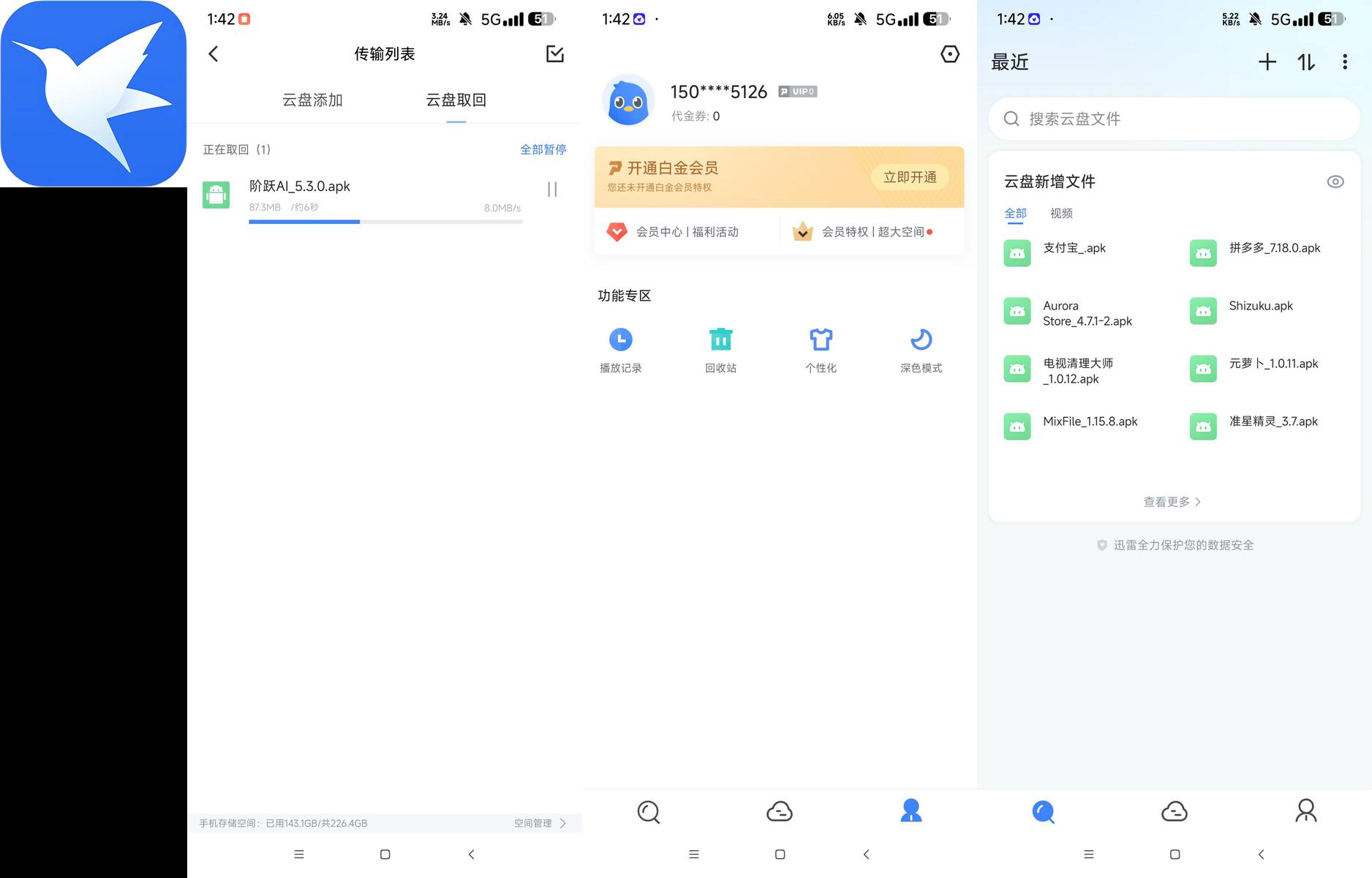 【应用简介】软件功能非常的强大,超大内存让大家随时进行存储,不限速高速下载,让大家上传下载更快速,在线云盘无需下载就可以打开文件,非常的便利。需要用正版的迅雷来保存到云盘。