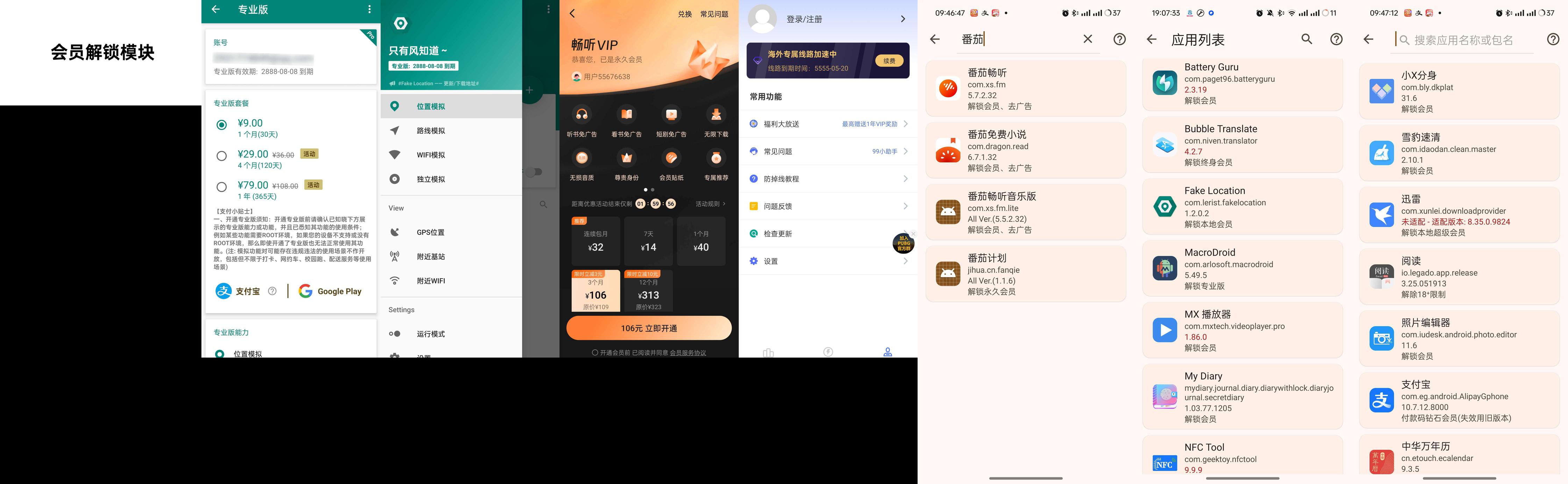 VIP解锁:该模块能够帮助用户免费解锁多种应用的VIP会员功能,包括但不限于番茄小说、番茄畅听、VMOS Pro、驾校一点通等应用。