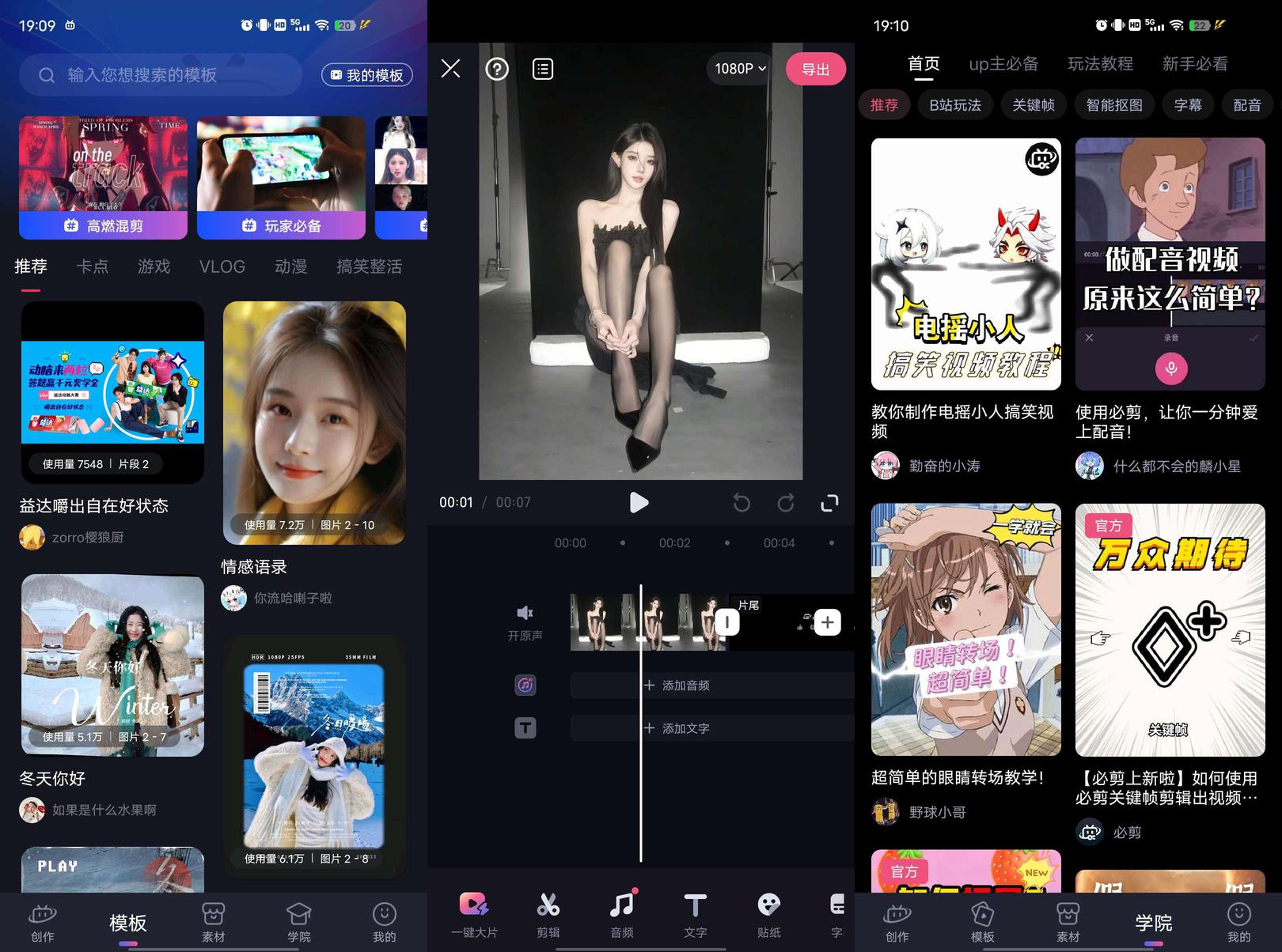 【软件简介】必剪是一款UP主都在用的剪辑神器,在这里你可以创建你的专属虚拟形象,实现0成本做虚拟UP主!还可体验高清录屏、游戏高光识别、神配图、封面智能抠图、视频模板、封面模板、批量粗剪、录音提词、文本朗读、语音转字幕、画中画、蒙版等功能,剪辑从此得心应手!还有超燃音乐、素材及专业画面特效,给视频加点料!一键投稿,支持投稿免流量,账号互通,投稿快人一步!