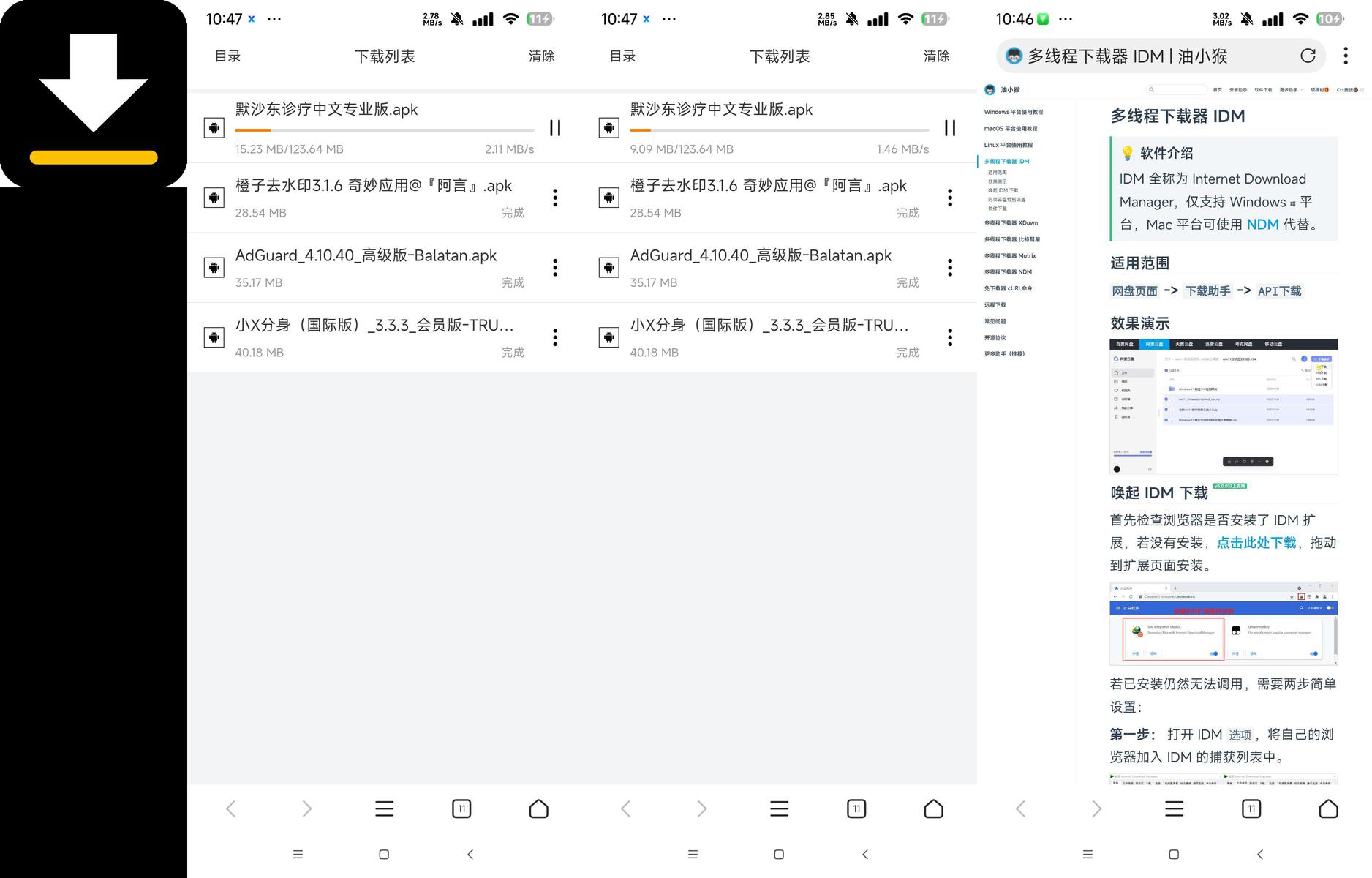 【使用说明】先安装X浏览器,图一位置文件导入安装好退了重进,安装好脚本后,把x浏览器改成桌面(电脑)模式,登录网页端夸克(其他的也一样),选择好文件点下载助手点第一个生成链接,点一下链接直接X浏览器下载, 也可以用lDM Aria比特彗星等下载器。(下载慢的话换一个浏览器就好,建议via更快点)