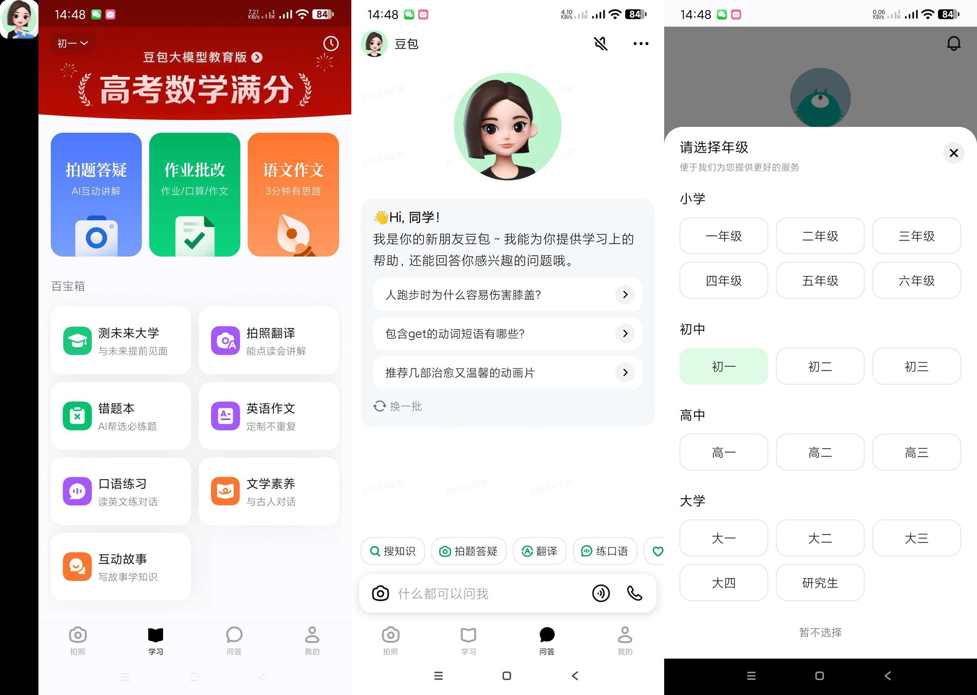 关于学习,你可能也需要一个“豆包爱学”这样的AI伙伴,它将为你提供全方位的学习帮助。依托于强大的AI能力,它可以全面帮助你讲解题目,讲解知识点,解决疑惑;它可以帮你批改作业,并收录整体错题 ;它还能指导你书写中英文作文,激发你的创作灵感;它甚至可以在你学习生活不顺心的时候,倾听和陪伴!