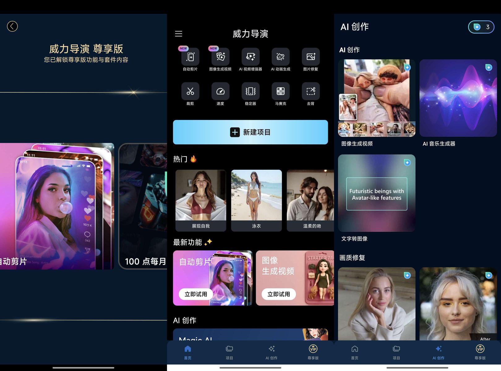【应用介绍】:威力导演是一款功能强大的视频编辑软件,支持简易时间轴操作和档案拖放,可轻松进行视频分割、修剪和特效添加。支持慢动作、快动作视频,并提供多种视频和转场特效。解锁了所有功能,可导出高清视频并直接上传至社交媒体。