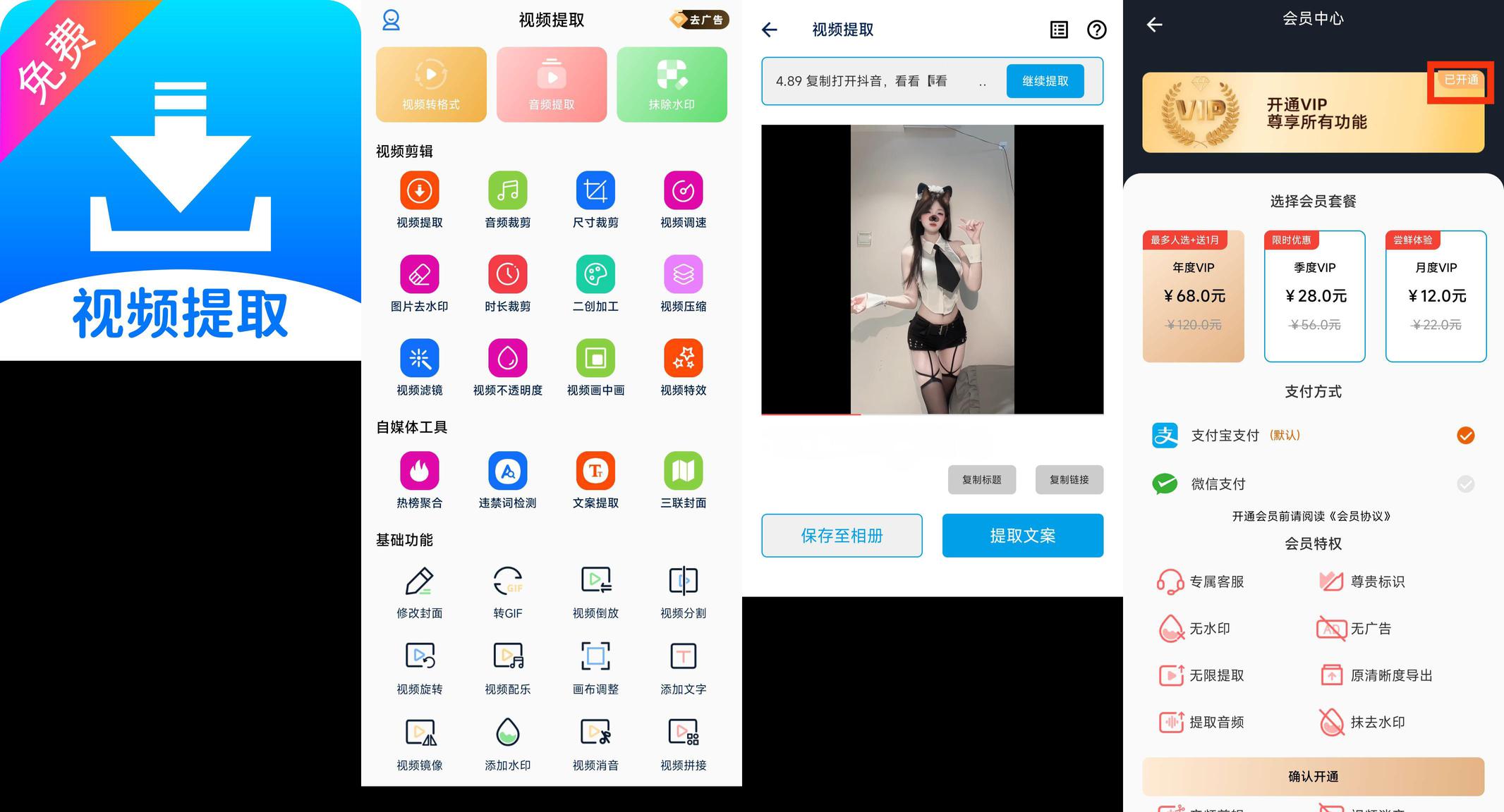 【应用简介】还在为无法便捷提取视频而烦恼?视频提取来帮您!它支持各大平台视频提取,操作简单,一键复制链接即可解析下载。还具备去水印功能,让您获取纯净视频。此外,视频剪辑、音频提取、格式转换也不在话下,满足您多元视频处理需求,快来下载体验!