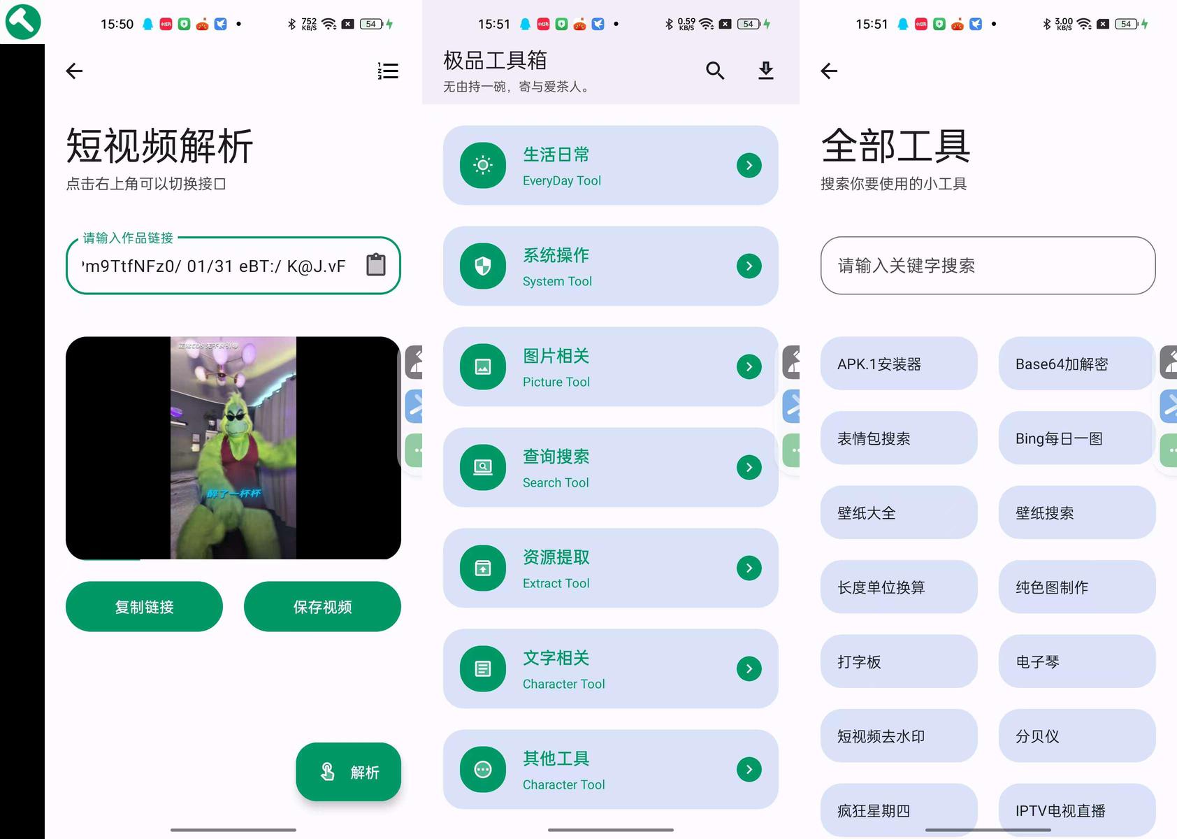 【资 源 介 绍】极品工具箱是一款功能强大的手机应用,涵盖生活日常、系统操作、图片处理、查询搜索、资源提取、文字处理等诸多板块,拥有超100种实用工具。音乐搜索支持全网音乐一键搜索、在线听歌与无损下载;短视频解析能一键无水印下载热门平台视频;图片处理具备图片转链接、取色、以图搜图等功能 。此外,它还包含刻度尺、指南针、水平仪等生活工具,界面简洁、操作便捷、运行流畅,满足多样需求。