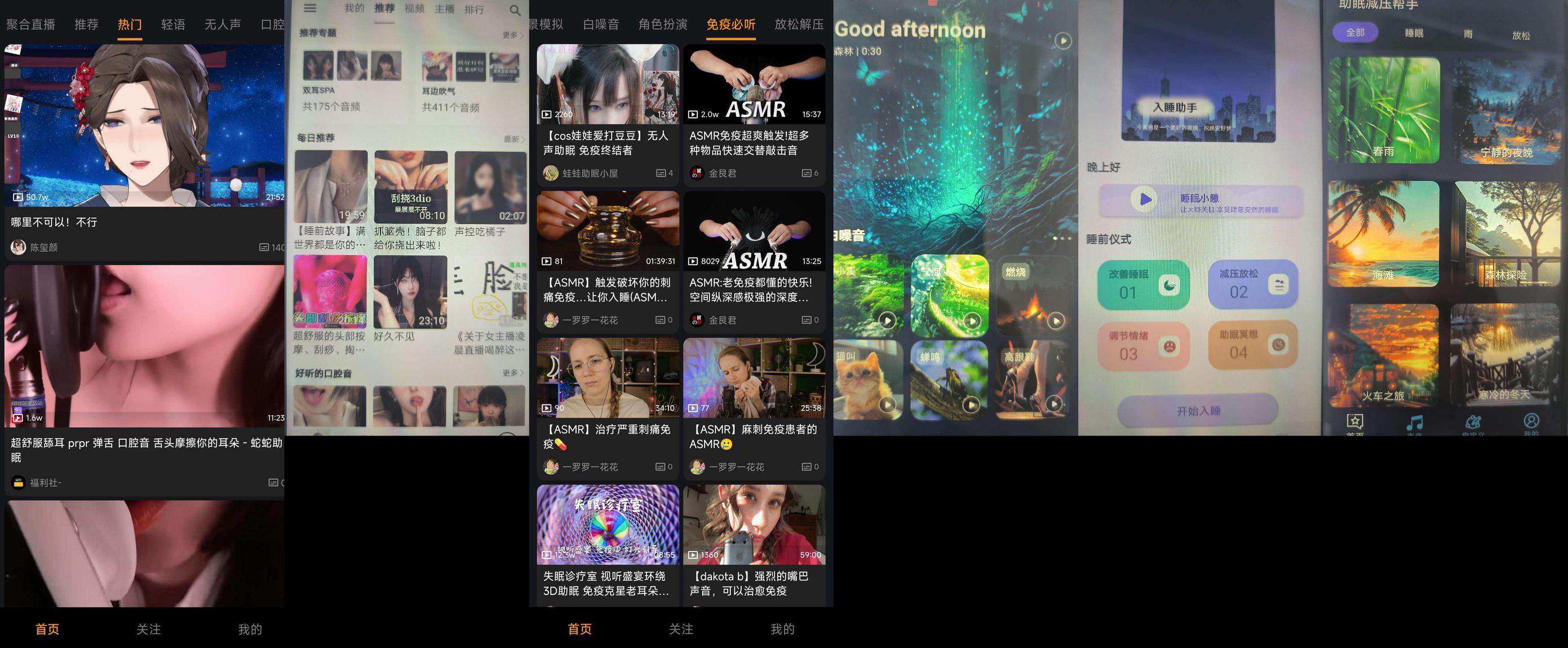 后两款软件以ASMR为主,口腔音掏耳朵等等。每一个都是不让你夜晚失眠的好帮手🔥