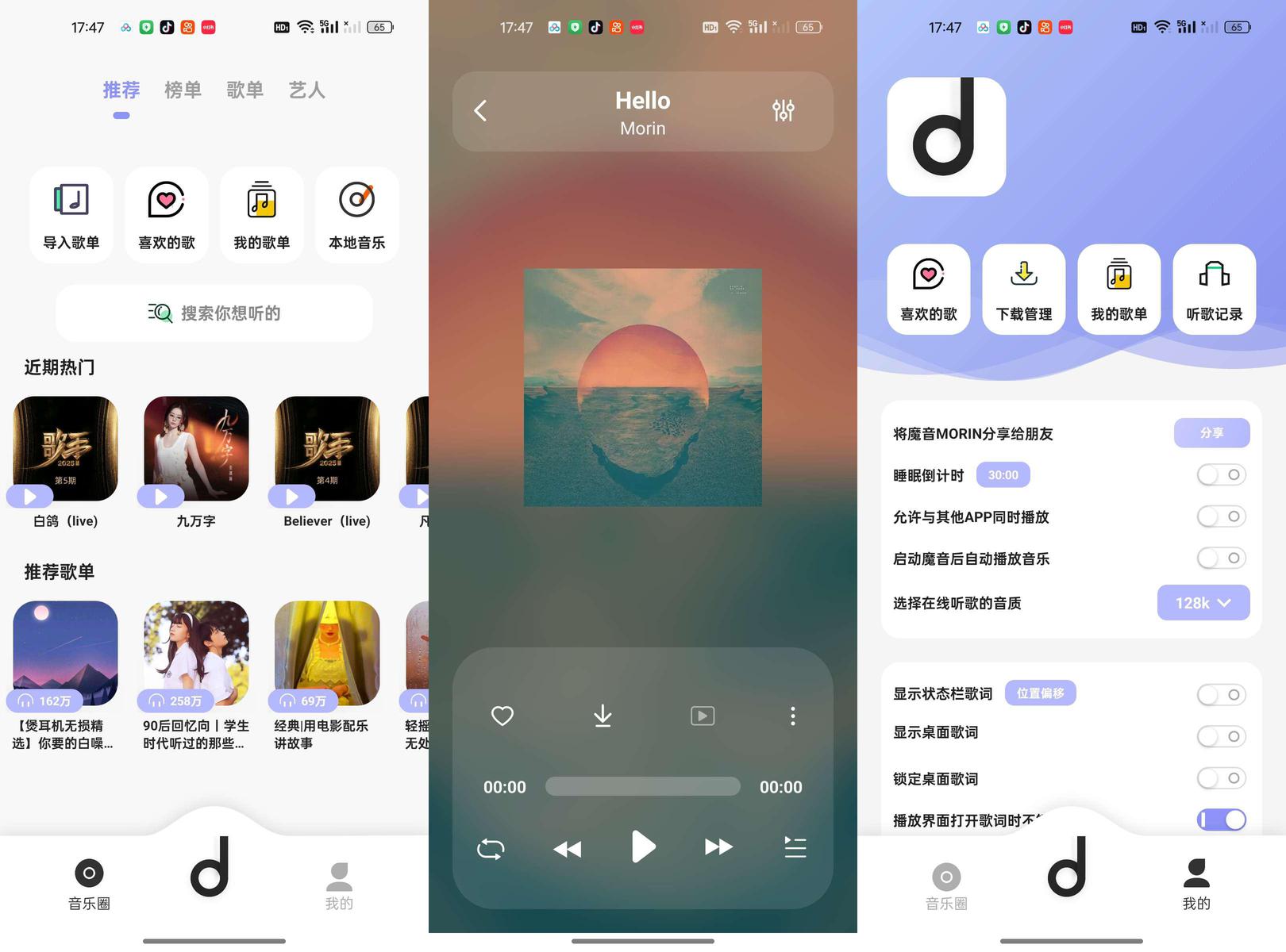 【资源名称】:魔音音乐MORIN v5.1.0去广告解锁VIP会员版