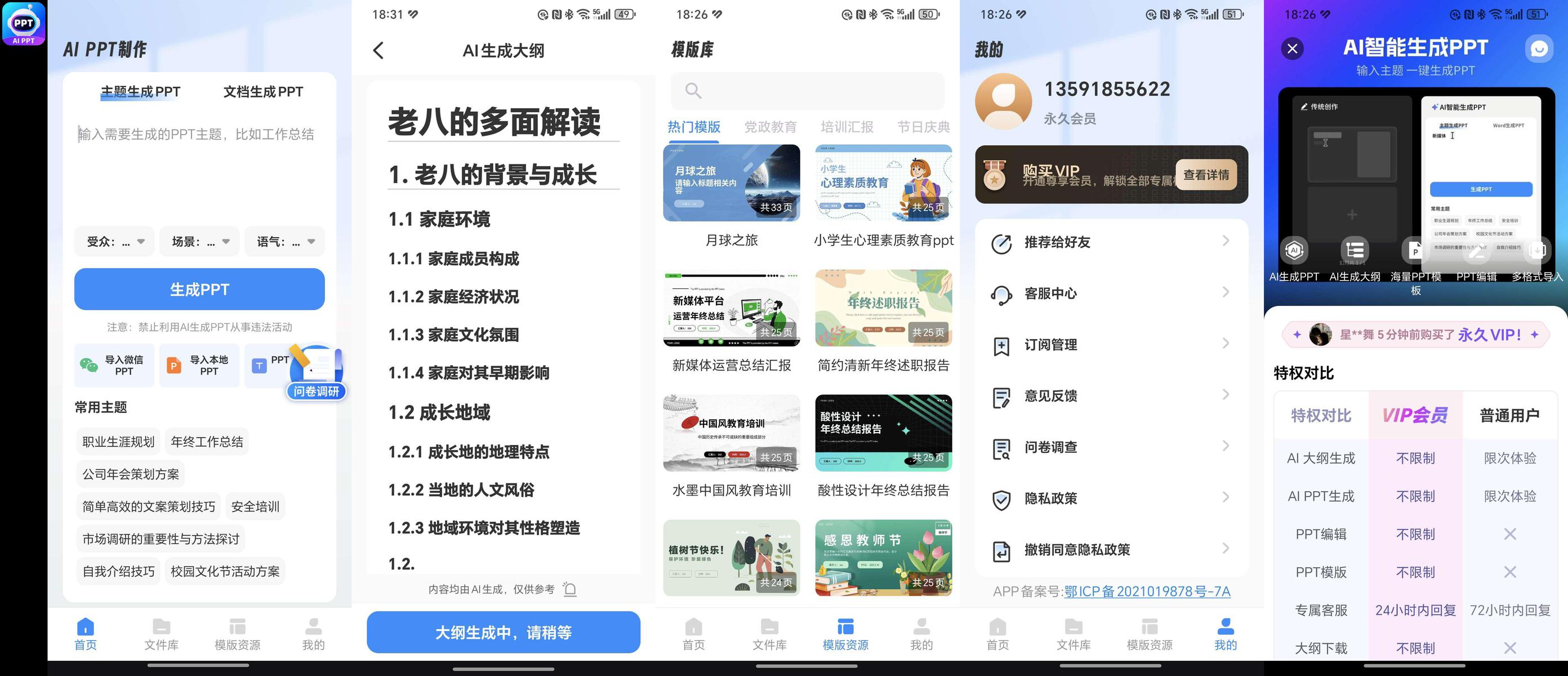 大纲与内容生成:输入主题或上传Word文档,AI自动生成逻辑清晰的大纲及内容文本, 支持“换大纲”功能调整结构。 模板匹配:根据主题智能推荐商务、教育、 二次元等风格模板,支持实时预览并一键更换模板。