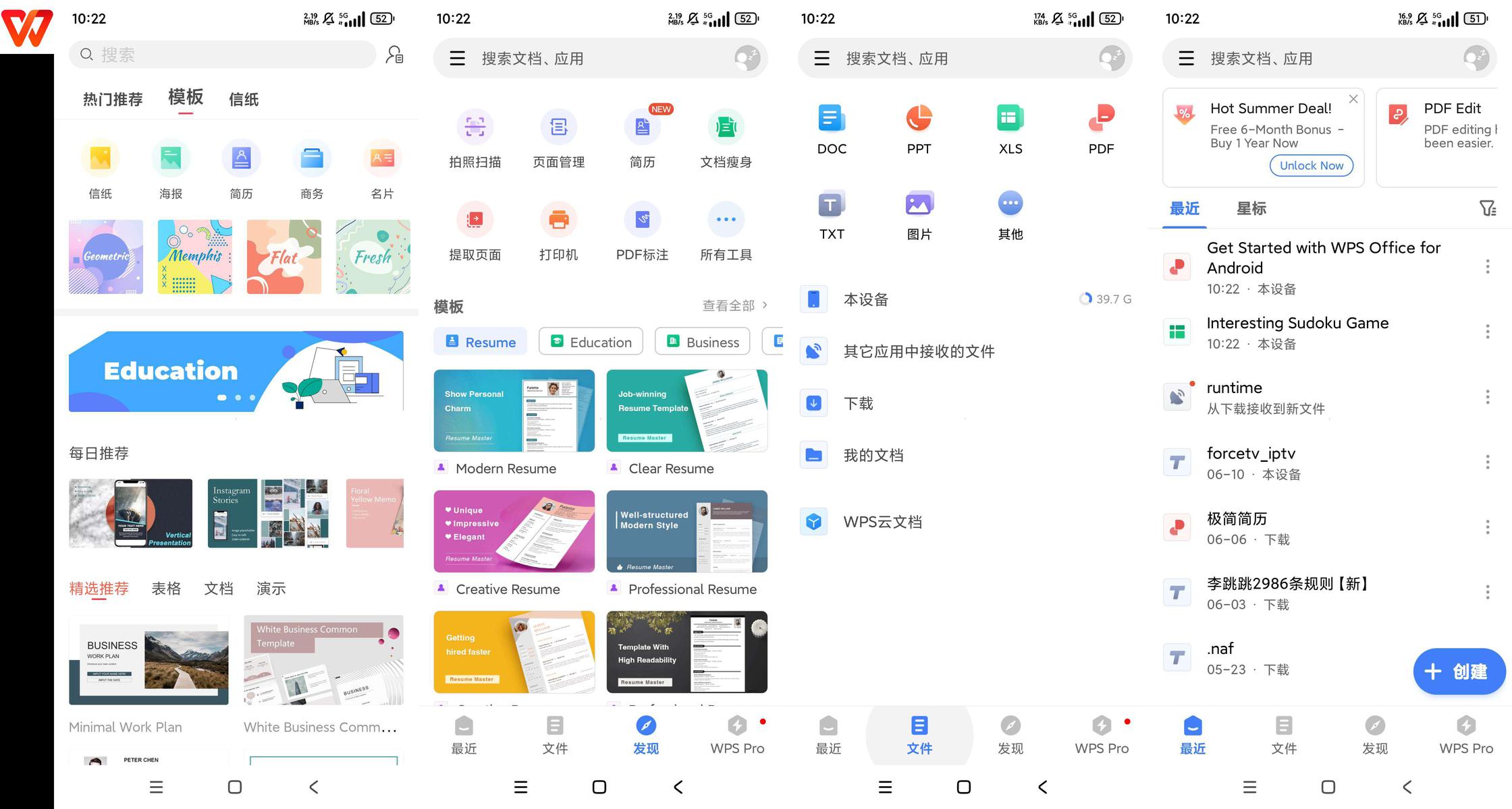 【应 用 介 绍】:WPS office国际版支持登录、云存储、有各种模板,软件能够为用户带来清爽、便携、高效的办公使用体验,能够更好的满足用户的使用需求。该软件完美的适配了安卓手机用户,拥有独有的手机阅读模式、清晰的字体、流畅的翻页等功能,还完美的支持Word、Excel、PPT和PDF等多达51种文档格式,并且支持云空间存储,能够让您在任何设备上查看和编辑,还有海量精美的模板和高级的功能可供用户使用,当然软件不仅仅只是适用于日常的办公,还适用于学生党,是一款非常不错的办公神器。