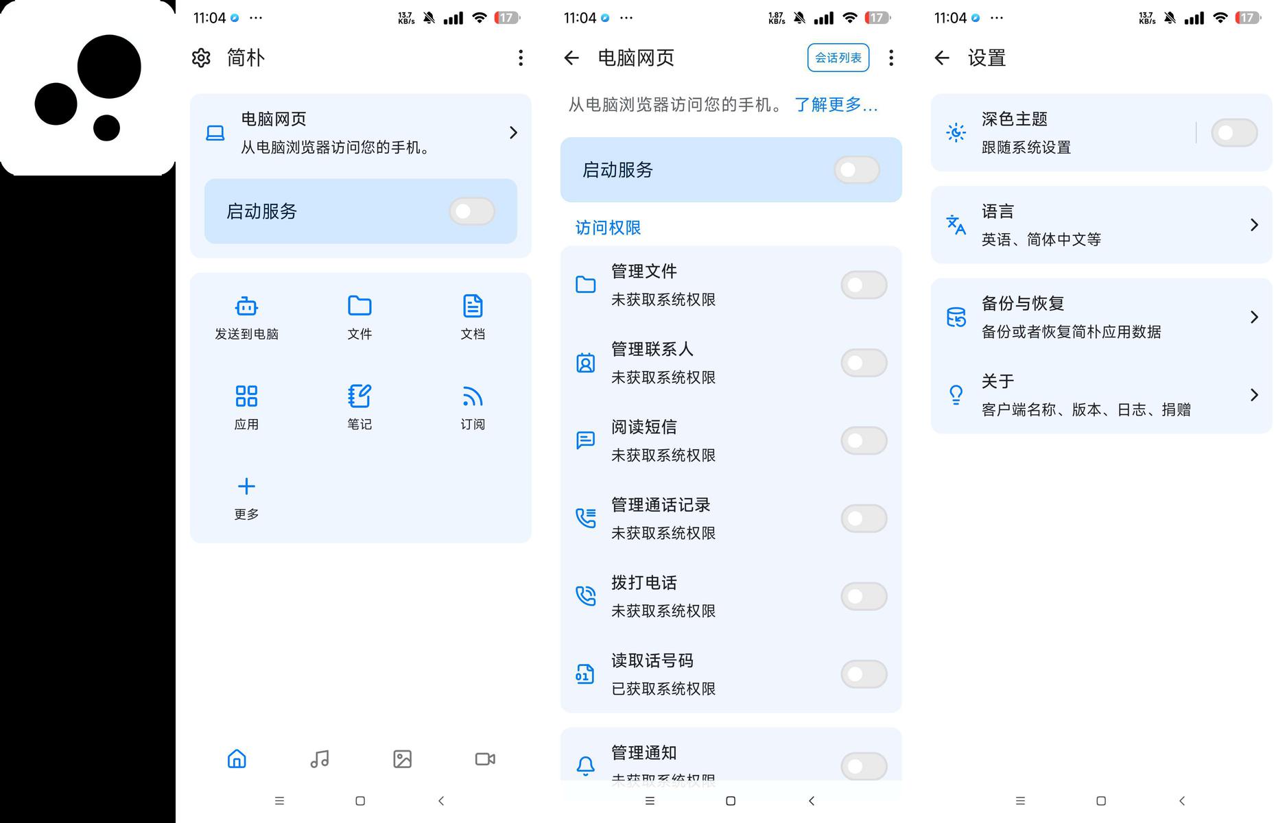 【应用简介】简朴App 是一款开源应用程序,可让你通过网络浏览器管理自己的手机。使用安全、易于操作的 Web 界面,可以从桌面访问文件、视频、音乐、联系人、短信、电话等。