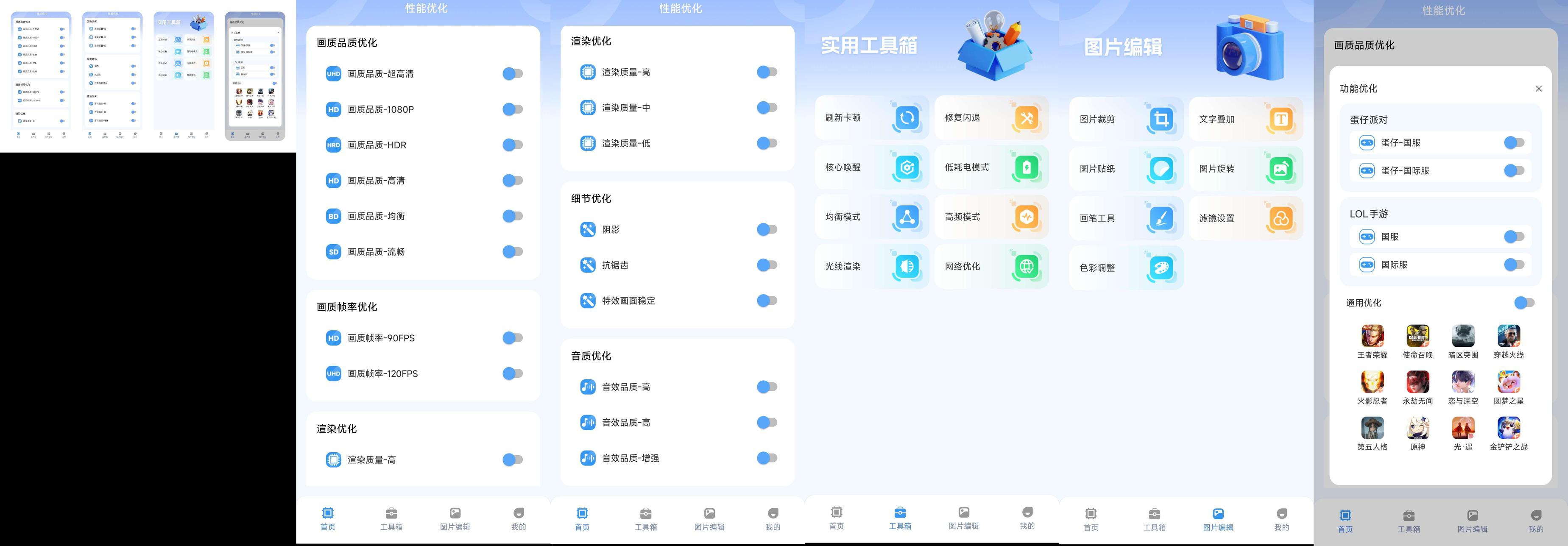 支持解锁120帧高帧率,提升分辨率与色彩细节,修复游戏闪退问题,内置图片编辑工具