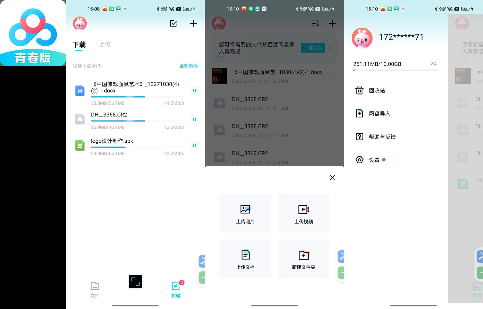 【资 源 介 绍】百度网盘青春版是百度网盘推出的一款云存储软件。它界面简洁,操作方便,支持多平台使用,实现多端文件同步。拥有10GB免费空间,虽容量有限,但满足日常轻量级存储需求。不限速的上传下载功能,大幅提升传输效率,还支持在线预览、文件扫描等实用功能 。