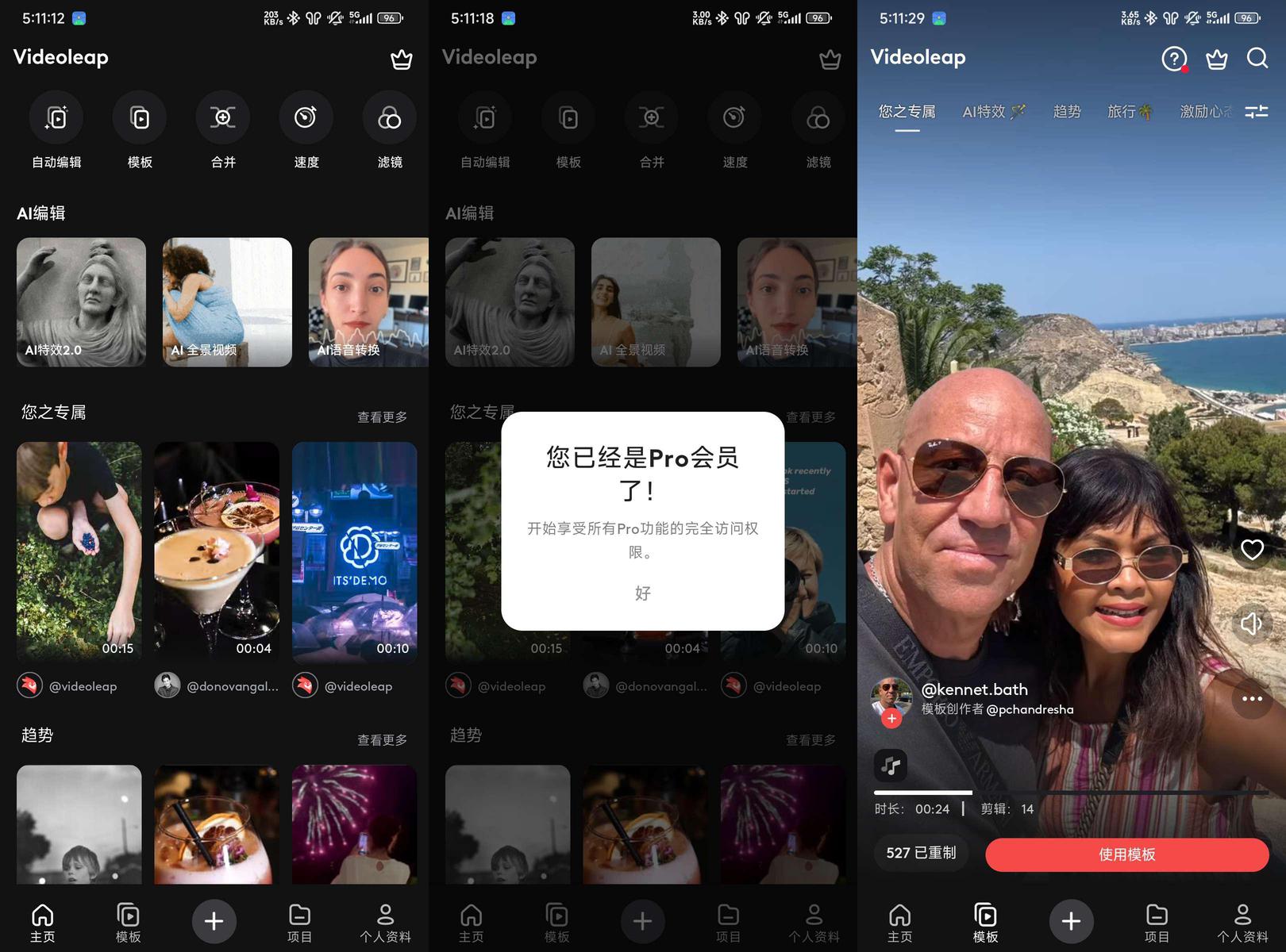 🔺【软件说明】:ai视频特效,删除广告,高级功能已解锁,时尚滤镜已解锁,高级版.