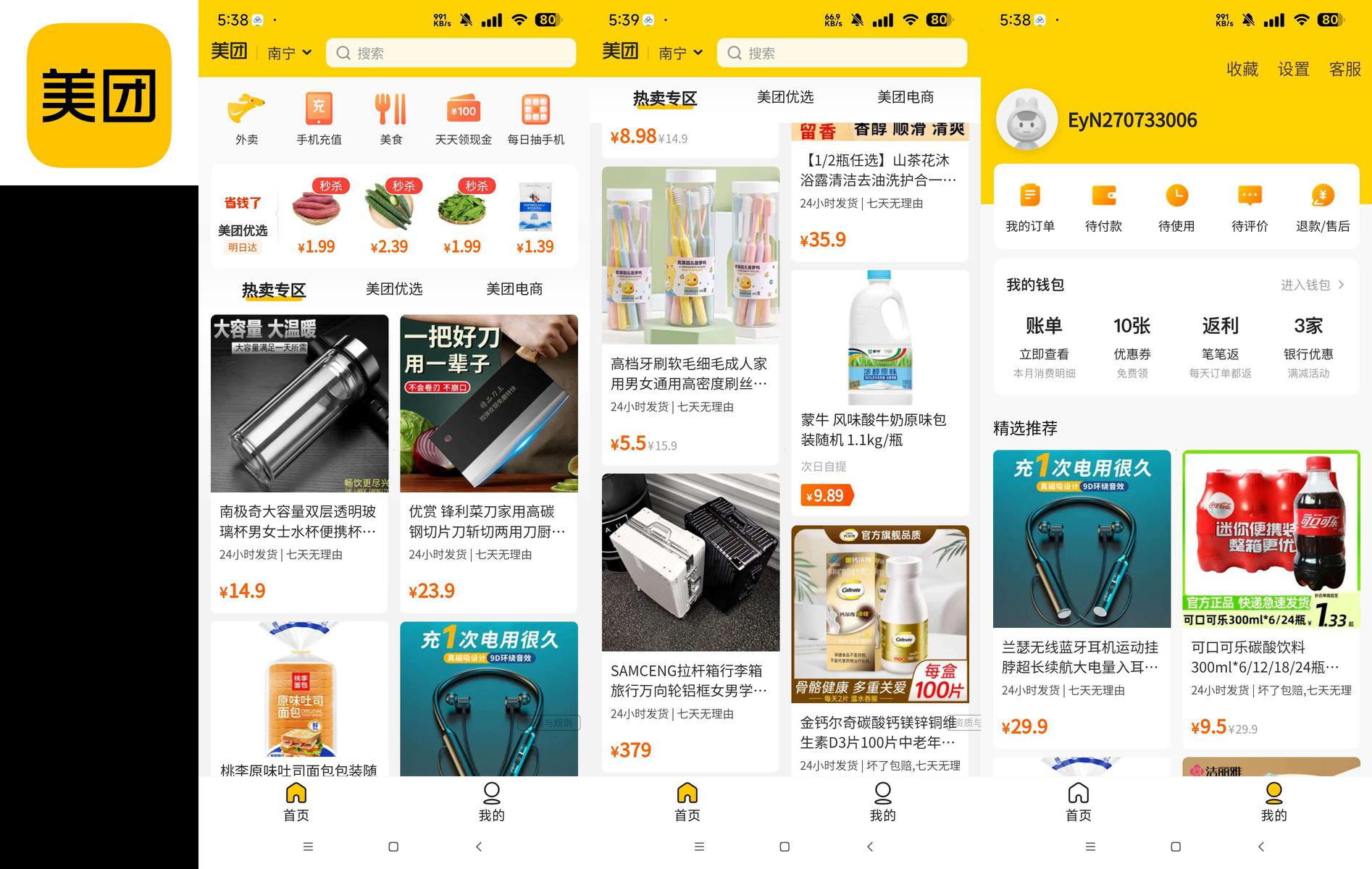【应用说明】可登录,集合了餐饮、外卖、酒店、旅游、电影、购物等多种生活服务于一体的综合性平台。在页面设计方面,美团App注重用户体验,力求简洁明了,方便用户快速找到所需功能。