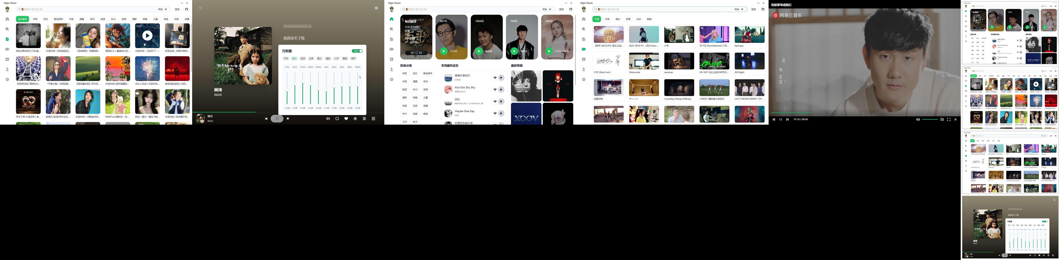- 支持登录某抑芸账号同步数据,提供首页推荐、歌单等功能。