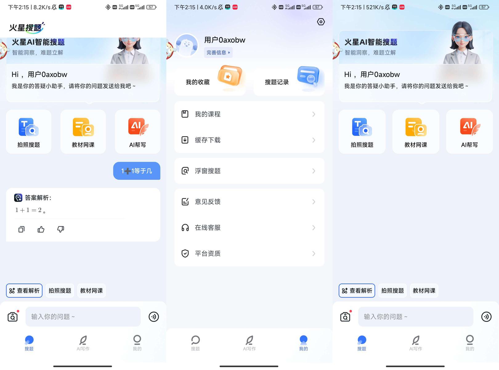 【官方介绍】:火星搜题是一个针对大学生的搜题学习平台。大学生在校期间所需的学习题目、课后答案及主流网课平台答案均有囊括。同时,还特别扩充了数学学科教材覆盖面,对公式识别、答案匹配等问题提供了有效解决方案,帮助用户高效学习。 【海量大学数学题目】 涵盖高等数学、线性代数、概率论、数值分析等数学科目,还特别扩充了数学学科教材覆盖面,提供高效的数学解决方案。 【拍照搜题】 超强的数学公式等特殊符号的识别能力,减少符号输入烦恼。 【智能匹配】 AI算法为您智能匹配搜题结果,提升题目搜索准确性,精准匹配答案并推荐相关题目推荐,举一反三让学习更高效。