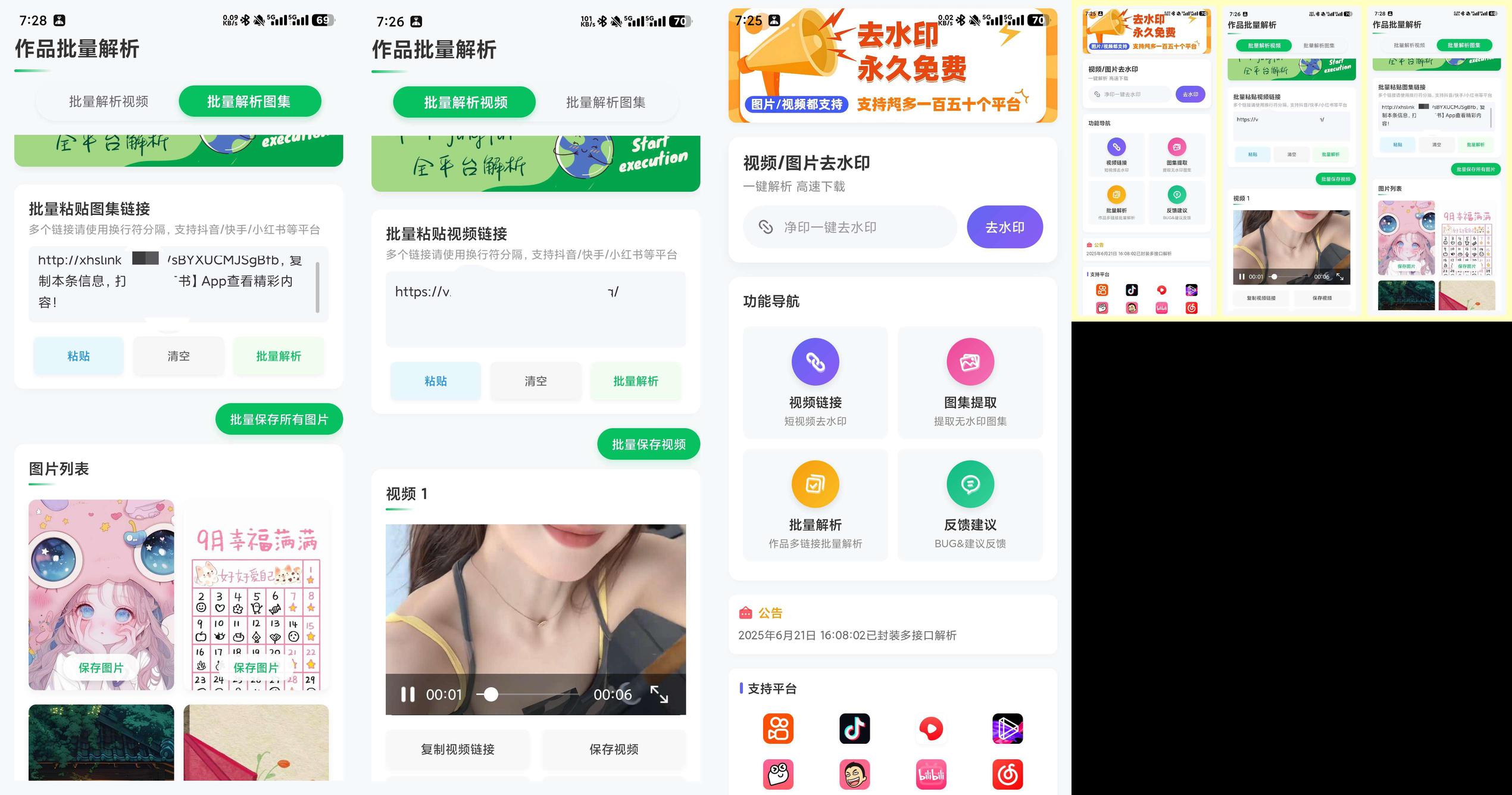 支持去除市面上常见的任何短视频的视频水印,快速去水印,图片去水印
