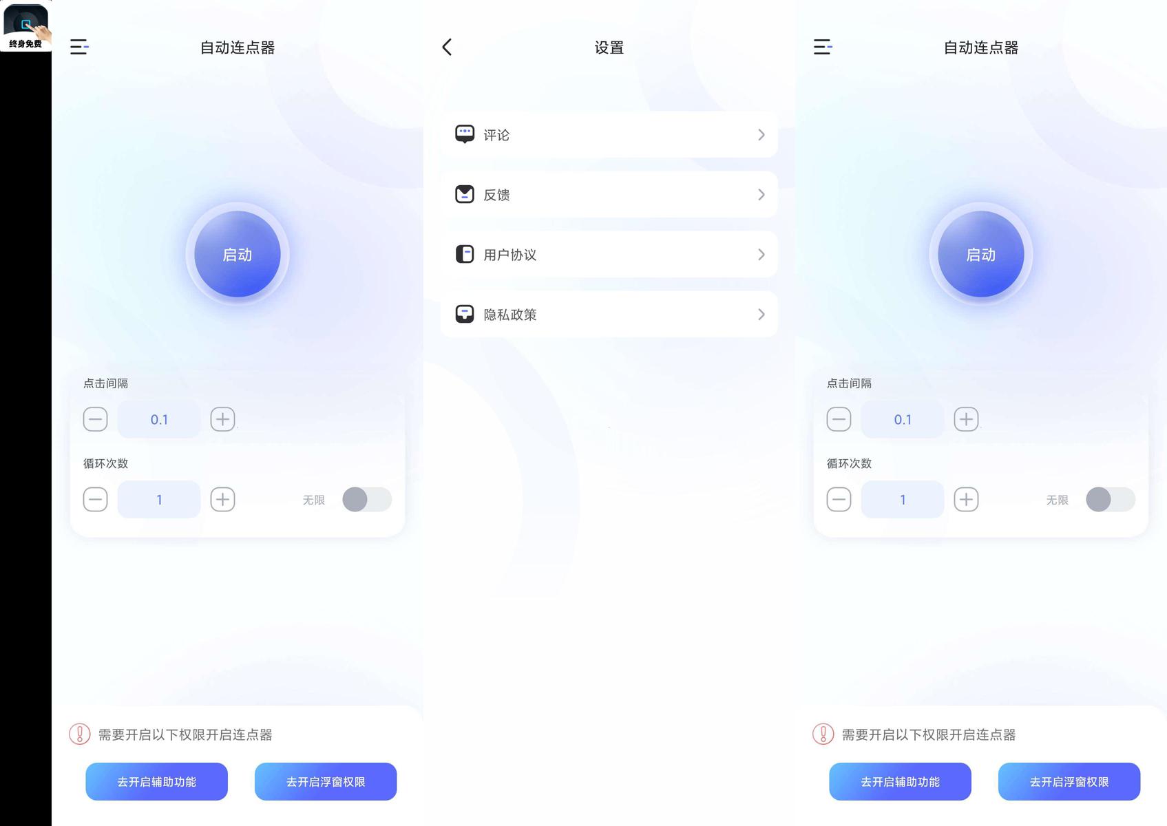 【应用简介】万能手机连点器是一款专为需要频繁点击手机屏幕的用户设计的自动化辅助工具。通过模拟人手点击屏幕的动作,它可以极大地提高用户在各种应用中的操作效率,尤其适用于游戏、刷视频、抢单等需要快速点击的场景。