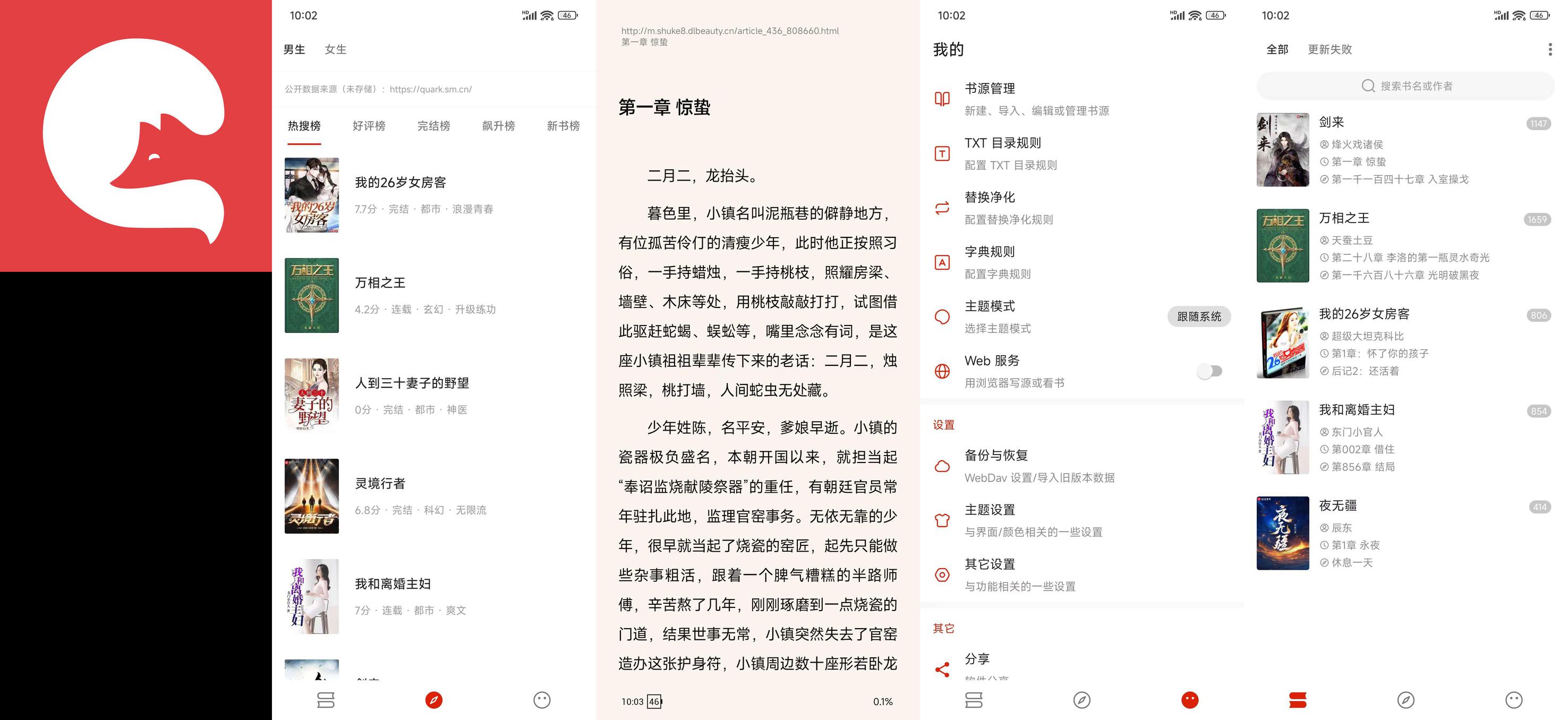 自带书源,已覆盖全网资源!无需导入,支持换源!想看什么小说,首页搜索就能随便看!