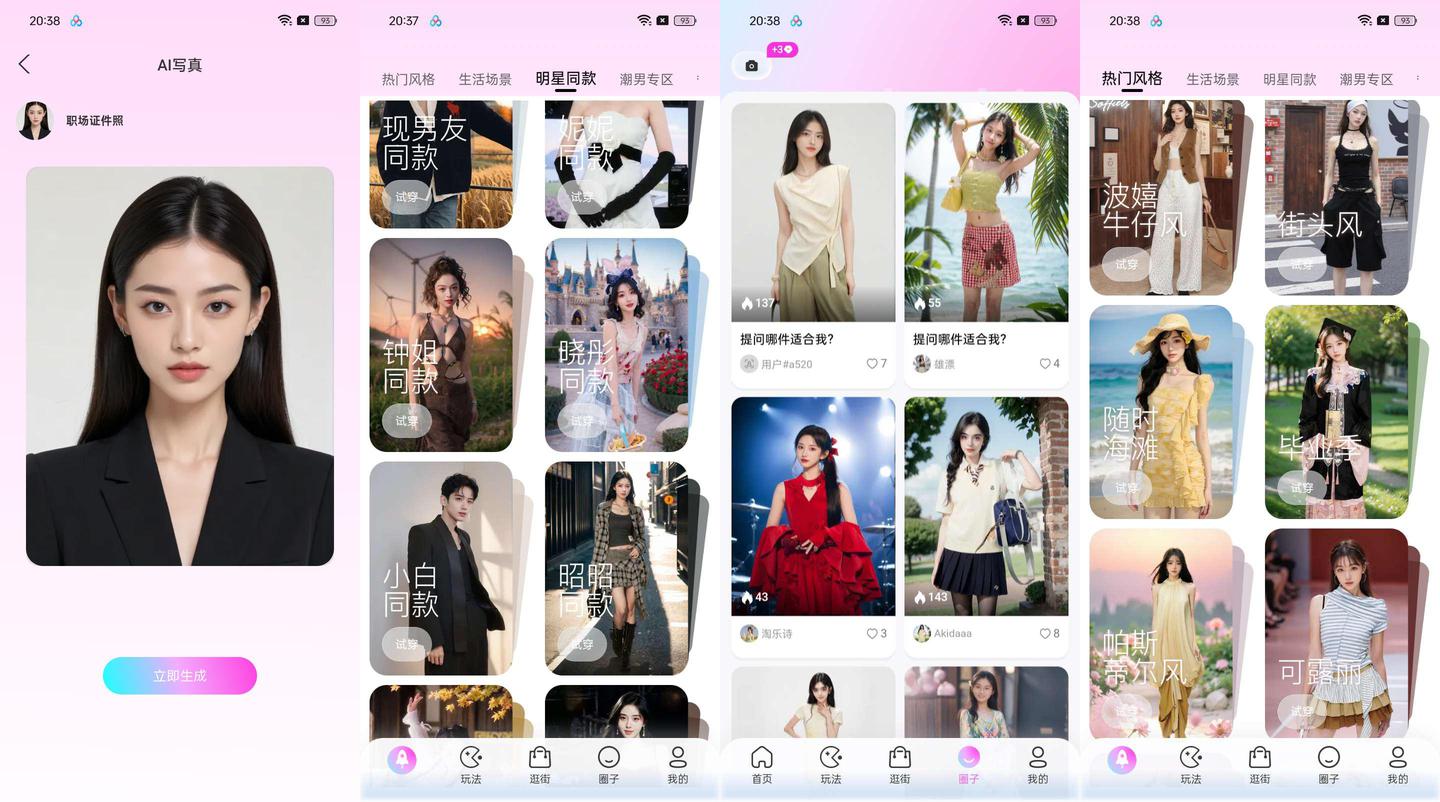 - 场景模拟功能:用户可选择街头、艺术展览等多种场景,查看穿搭效果