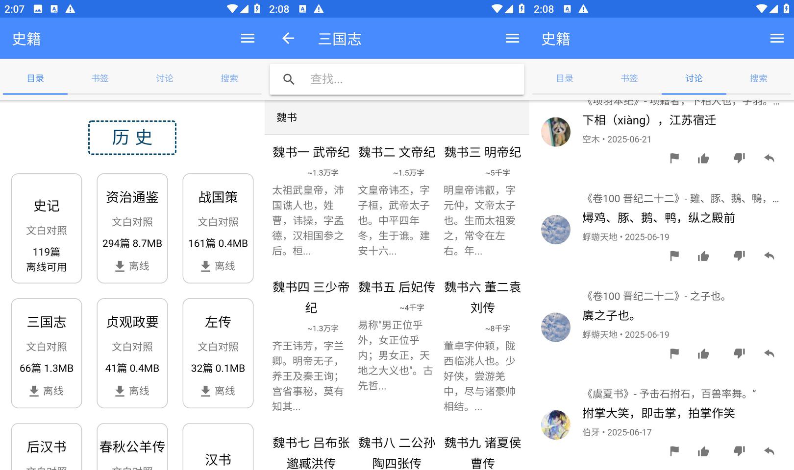 【应用说明】读典籍APP是一款专业的阅读各类史书籍的阅读软件,通过独有的排版方式,方便看白话文翻译、也方便读者对翻译进行斟酌,避免花费大量精力对应原文和注释,旨在利用电子设备交互特性和人工智能算法变革古文阅读体验。该软件拥有从古代到现代各个朝代的明书典籍,其中包括《史记》、《资治通鉴》、《吕氏春秋》、《论衡》、《楚辞》、《乐府诗集》、《孙子兵法》等等,使得用户更加深入的去阅读全文,领略古典名着的要领,而且最重要的是,完全无广告、免费供古籍爱好者使用。