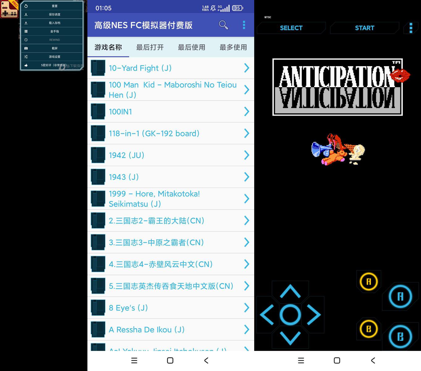 【应 用 介 绍】:高级NES FC模拟器付费版是安卓手机上的一款专业小霸王模拟器,它最大的特点就是精简实用,安装后无需你导入游戏,里面就有内置海量经典NES以及FC游戏。而且这个模拟器兼容性强,支持大部分手机,同时此版本完全免费使用,还支持金手指,喜欢经典怀旧的玩家不要错过哦。
