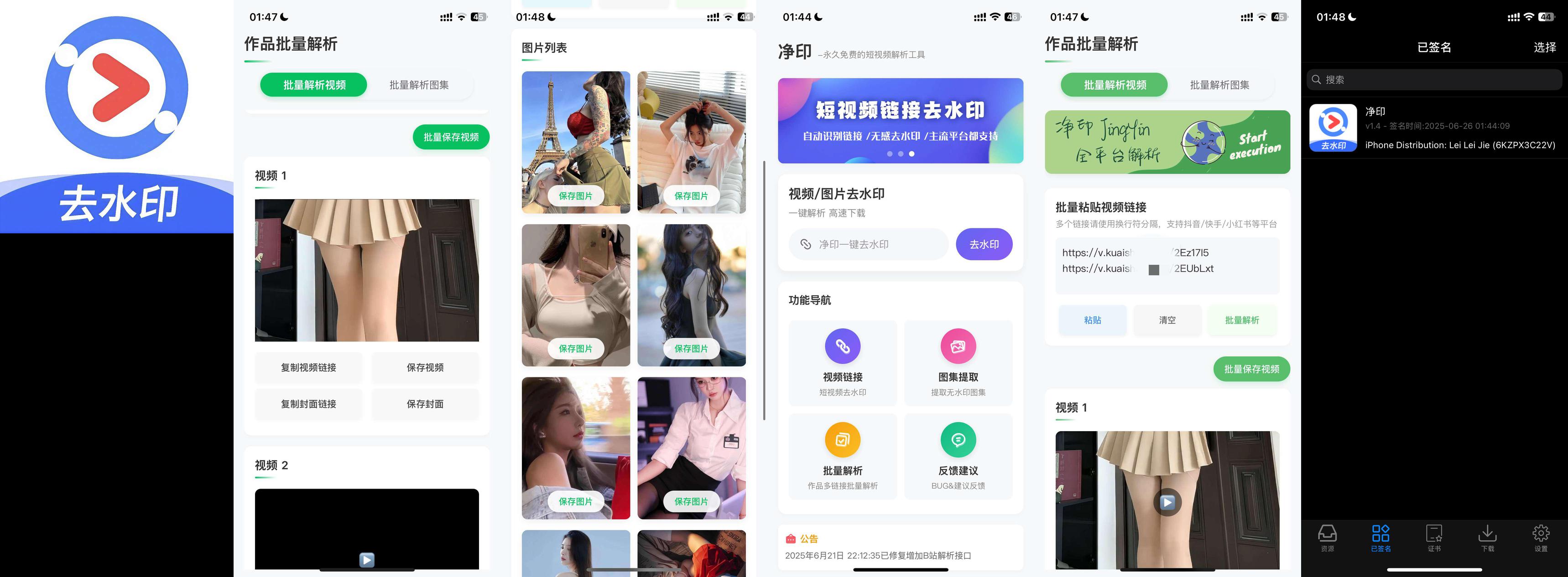 【原创开发】净印去水印🔥短视频去水印工具🔥支持一键批量解析