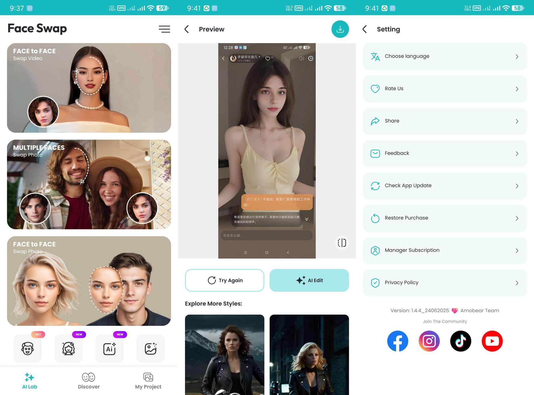 📣【软件介绍】换脸 - AI 照片编辑器」释放您的创造力!通过换脸 - AI 照片编辑器,将您的想象变为现实,这是在照片和视频中交换人脸的终极应用程序。无论您是想探索不同的造型