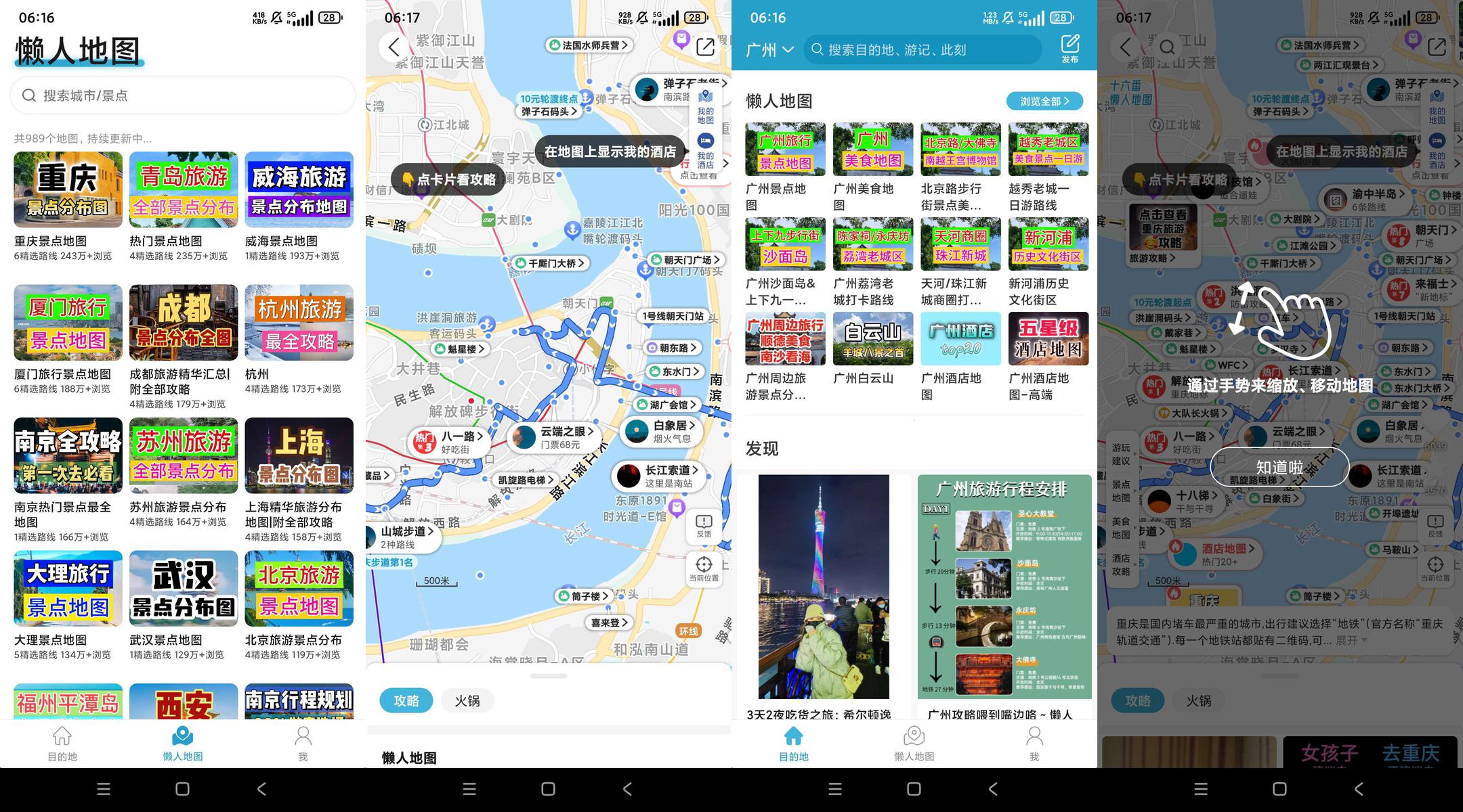 地图上的卡片,点开就是旅行者们为此提供的攻略或者美照