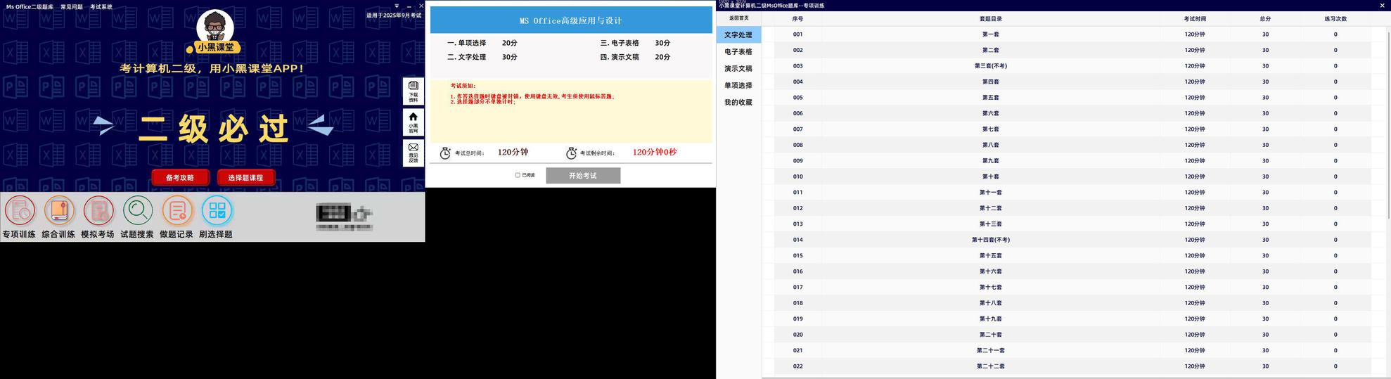 2025年9月全国计算机等级考试将于9月20日至22日举行。为帮助广大考生高效备考,小编特别整理了最新版(适用于2025年9月备考)的小黑课堂计算机一级MS Office电脑题库软件安装包,助力大家轻松应对考试、顺利通关!