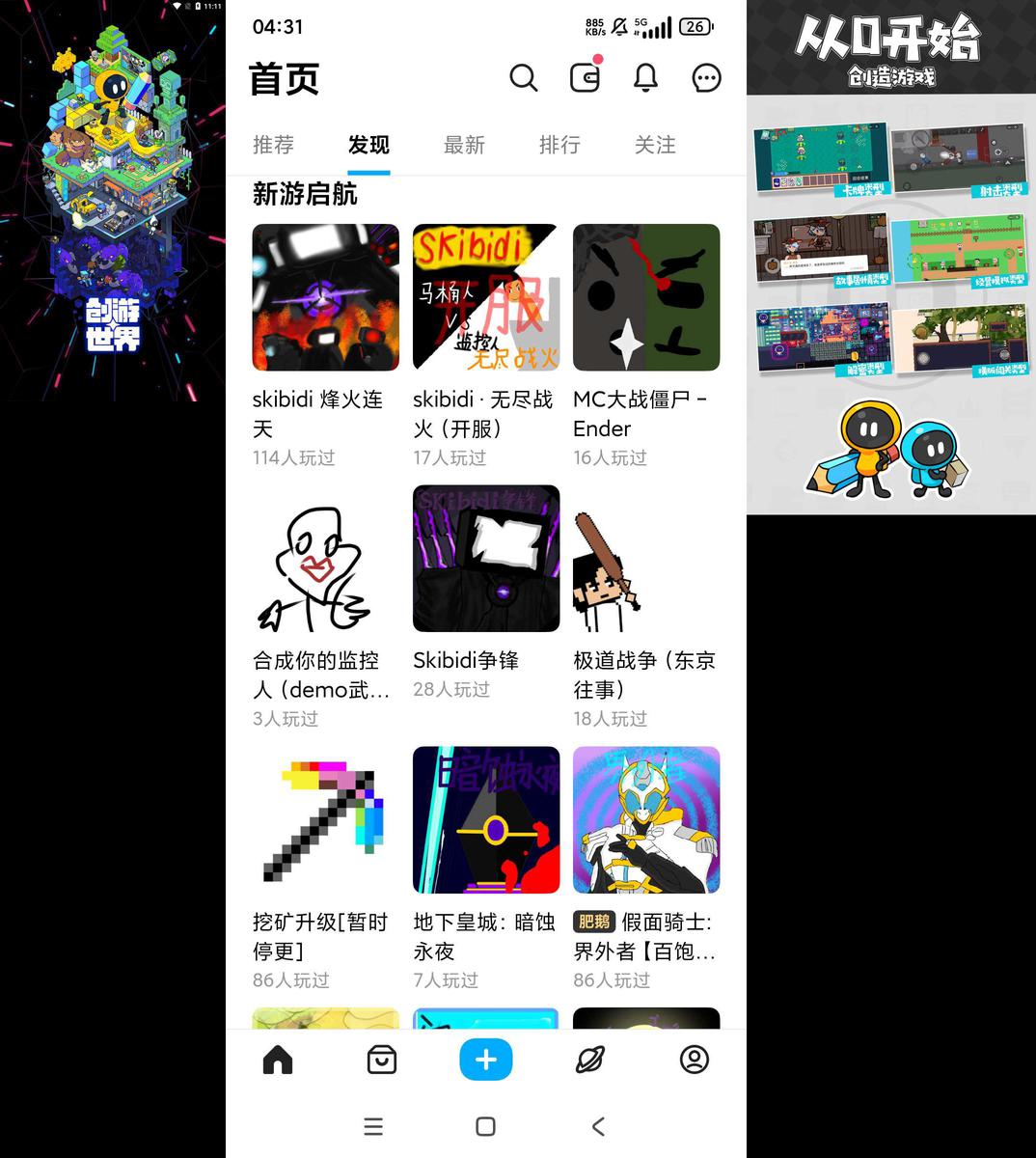 【应 用 介 绍】:创游世界免广告版是一个简单好上手的游戏创作平台。您可以在这里很好地理解游戏的构建,懂得游戏策划以及其他各方面的知识。通过发挥自己的创作力和想象力,设计人物、背景、模型、玩法和世界观等内容,打造属于您的个性化游戏。您还可以加入团队创作,寻找志同道合的伙伴一起制作游戏,与他们交流讨论制作游戏心得。您也可以分享自己的半成品设计稿,