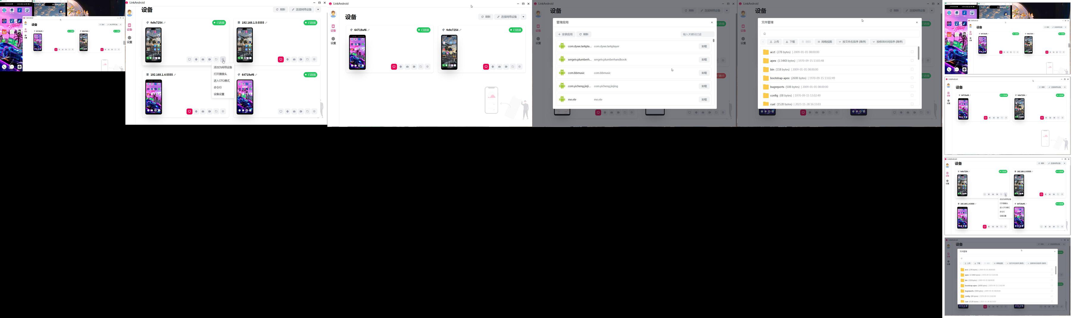LinkAndroid是一款全能的手机连接助手,专为方便快捷地连接Android手机与电脑而设计。它提供了丰富的功能,包括屏幕镜像、GIF/MP4录屏、截屏、文件管理以及手机操作等。支持多部手机同时连接,让您可以在电脑上轻松管理手机内容,进行屏幕共享和录制。无论是个人使用还是专业需求,LinkAndroid都能满足您的各种要求,带来高效便捷的操作体验。