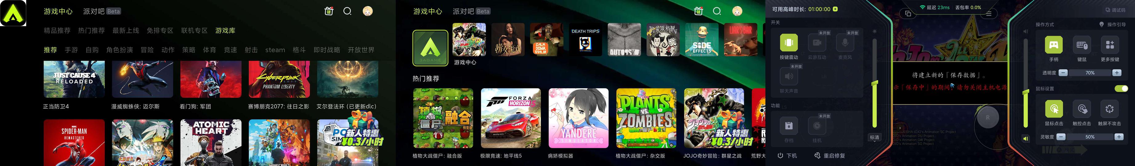 【应 用 介 绍】:3a云游戏是一个十分好用的云游戏平台。您可以在手机就能轻松畅玩各类3A大作。在平台上,无论是热门游戏还是经典老游戏这里应有尽有,满足不同玩家的需求。应用通过高效的云端技术,为您提供低延迟的游戏体验,确保玩家能够顺畅体验每一款游戏。平台每天实时更新,不断引入新的游戏,保持游戏的多样性与新鲜感。在这里每天都有各种福利,让您领取免费游戏时长