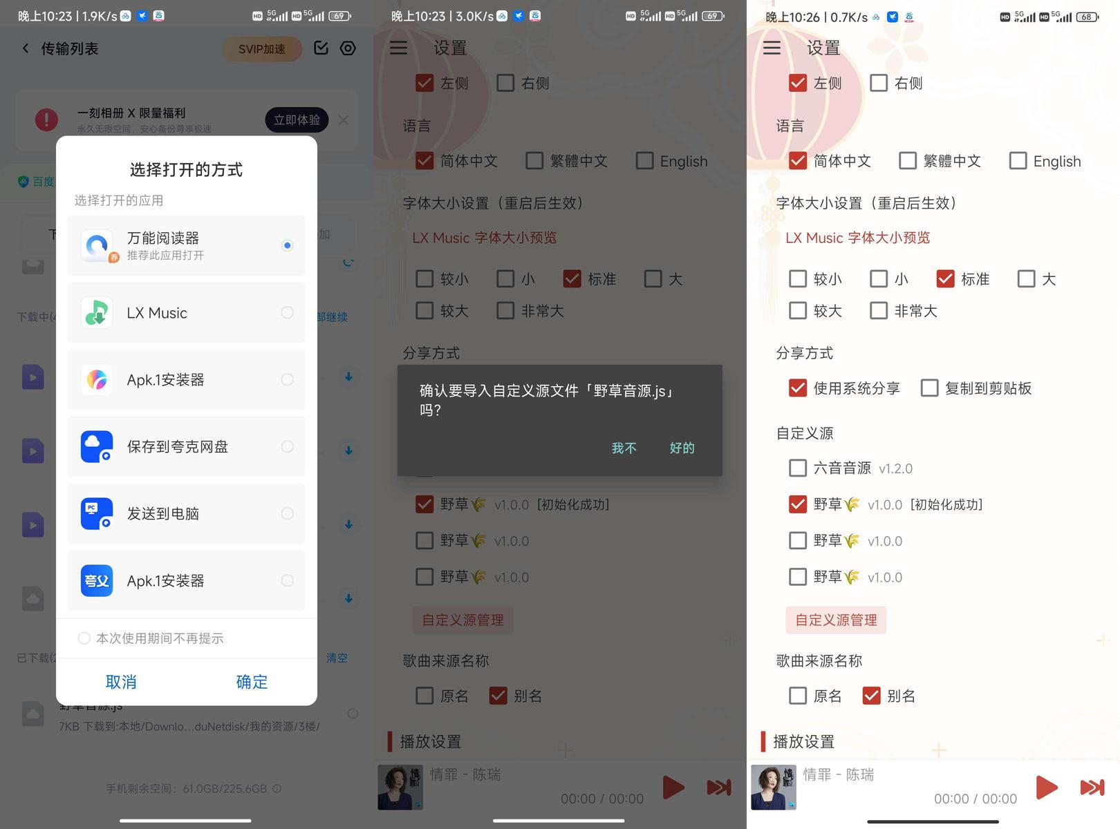 先下载音乐APP。,下载完后将音源也下载。然后单击音源,选择打开的方式选择音乐APP。