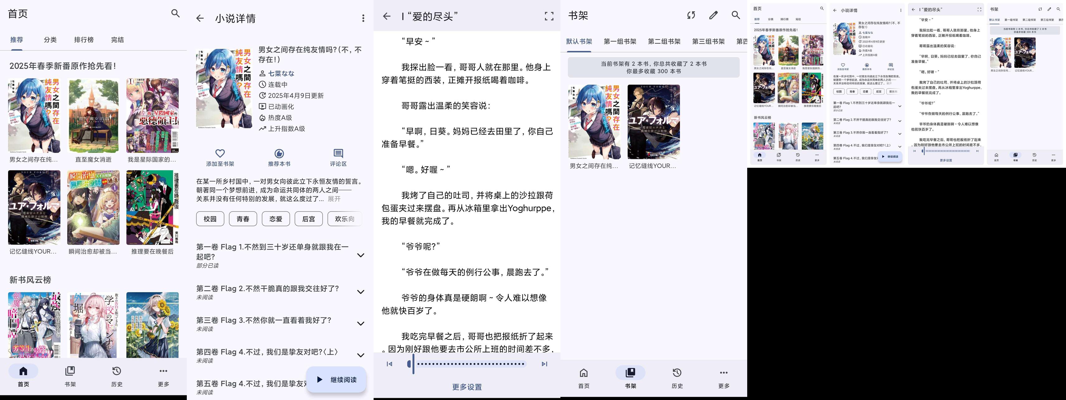 - 书架:方便管理您喜欢的轻小说,轻松添加或移除书籍。