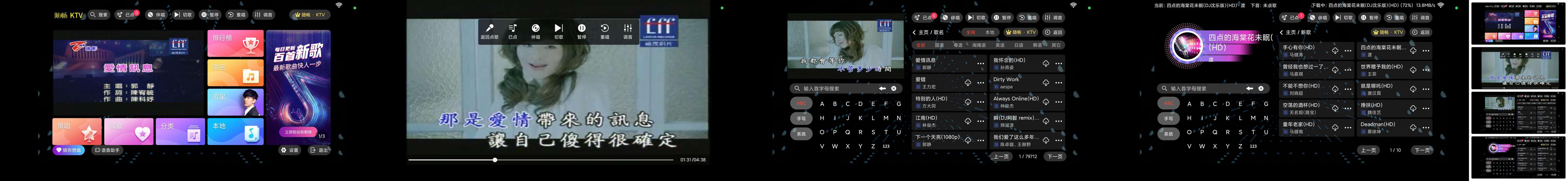 支持庞大的歌曲库,便捷的操作界面,歌词滚动显示,MV和歌词配置