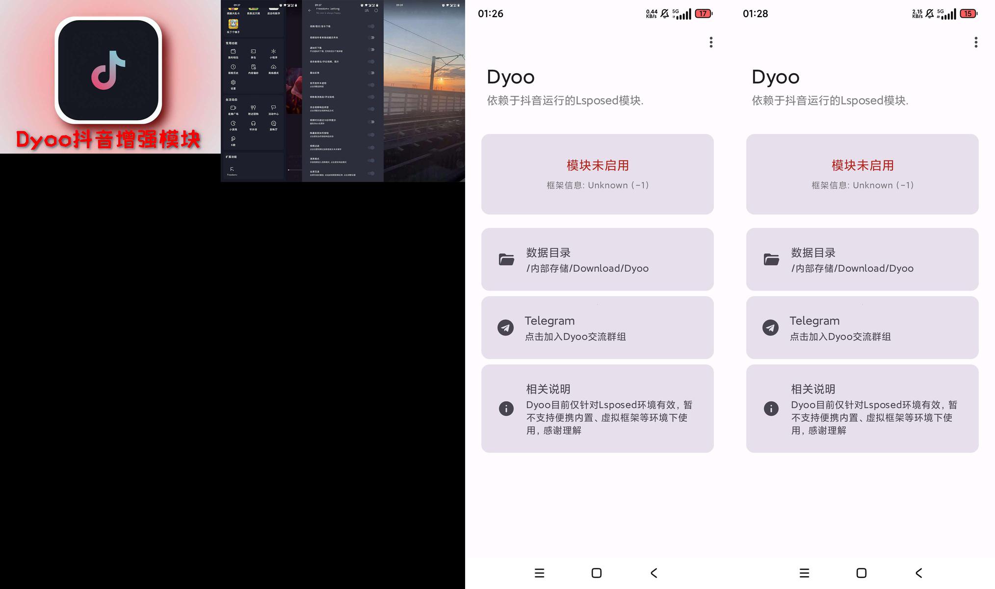 【应 用 介 绍】:最新出的一款全新针对抖音打造的Lsposed模块软件,Dyoo模块apk最新版,软件需要搭配Lsposed框架和抖音才可以使用,支持帮助你去水印,视频过滤功能,聊天隐藏,消息防撤回,自定义顶部菜单等功能,还有全屏沉浸式播放可以选择,更多功能可以自己测试,不懂Lsposed模块框架的最好先看看网上视频教程。