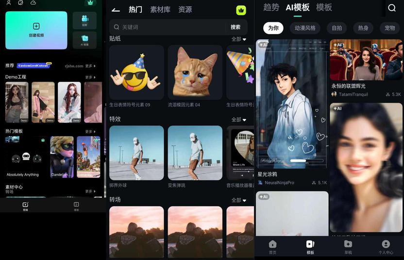 – PIP(画中画):添加多层视频、图像、贴纸、特效、文字等。