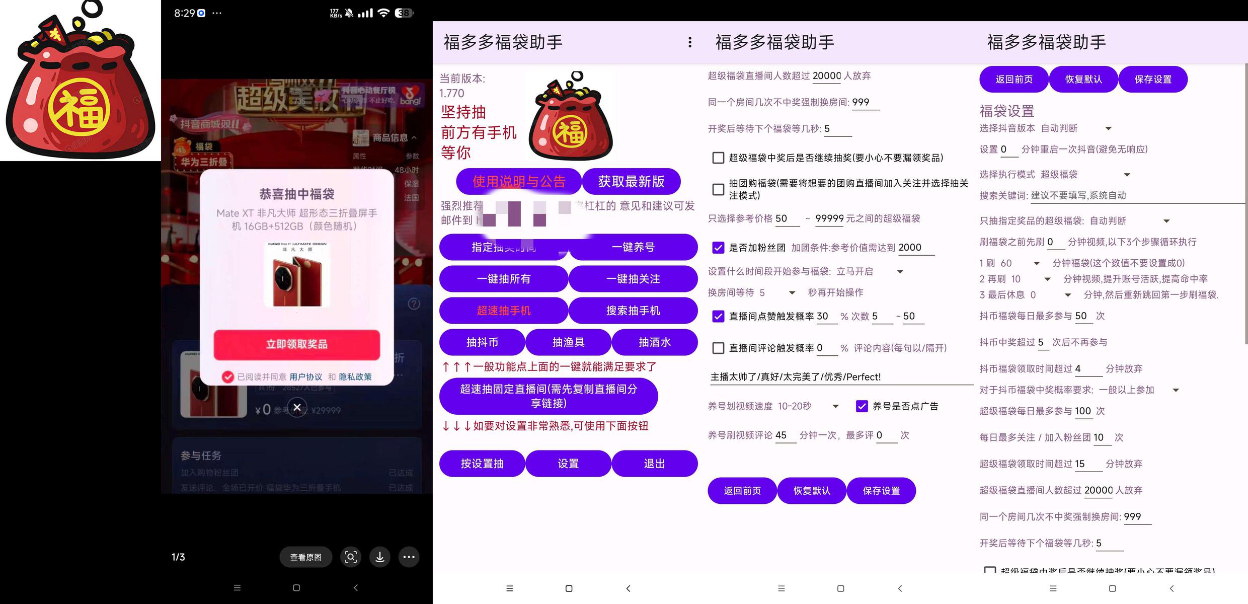 分享_福多多福袋助手_抖音全天自动抢福袋抖币_养号_