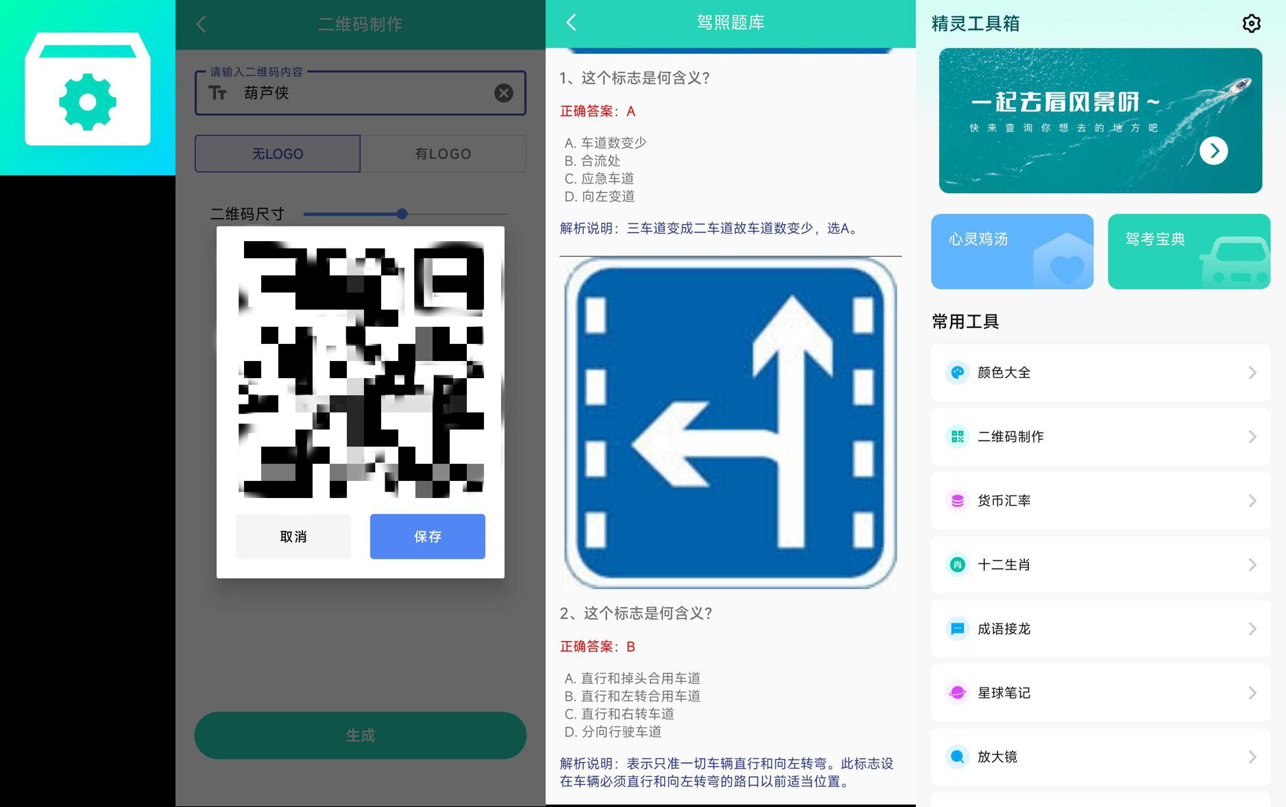 分享_精灵工具箱_二维码生成_驾考宝典_万年历_免费无广