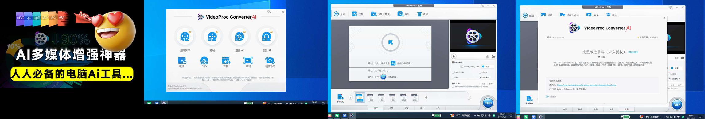 【软件介绍】VideoProc Converter AI 这是一款全能型的视频工具箱,主要功能包括:Ai视频无损放大、视频变清晰、图片变清晰、视频格式转换、DVD 转换、100+视频下载、视频录制等功能。软件超级强大,而且体积很小,最高支持4K画质修复!