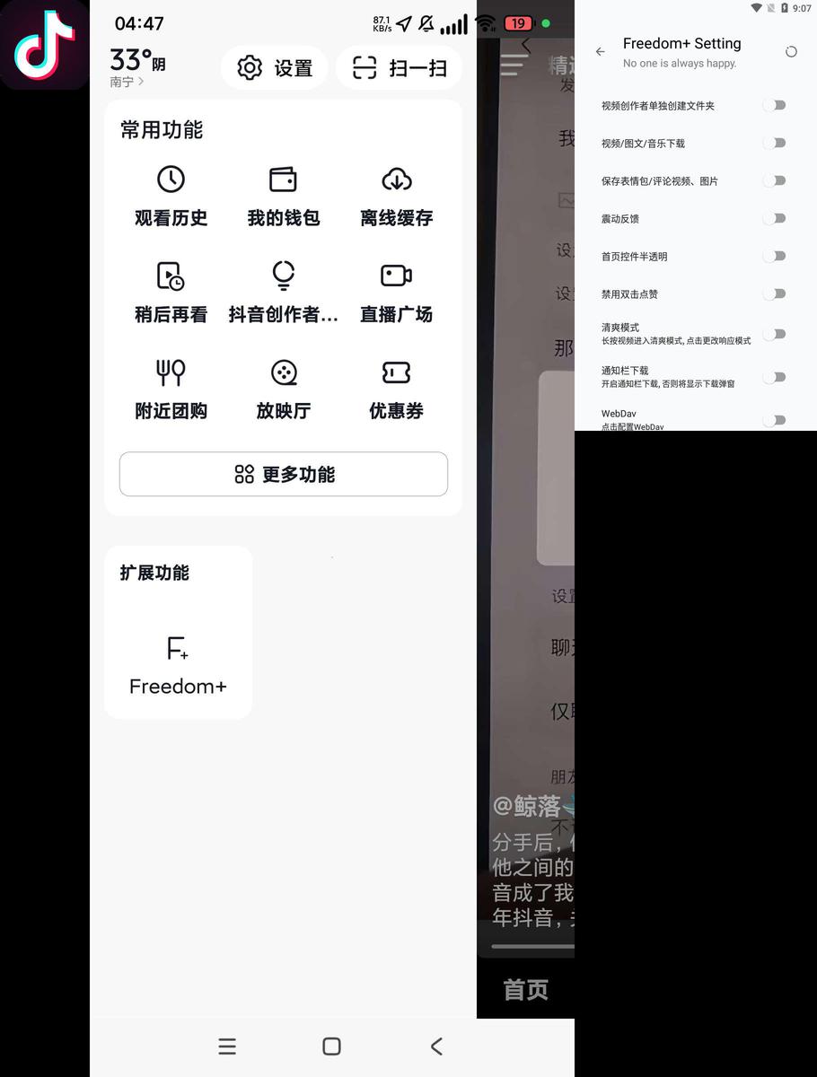 【应 用 介 绍】:Freedom+(Xposed模块)App是一个依赖于短视频使用运行的开源Xposed模块。它通过Lsposed进行正常使用,Freedom提供了多个实用的功能,包括无水印视频下载、评论区视频/图片保存、表情包保存等。它还具有首页控件半透明防烧屏的功能,可以隐藏大部分控件,在首页上创建清爽模式。