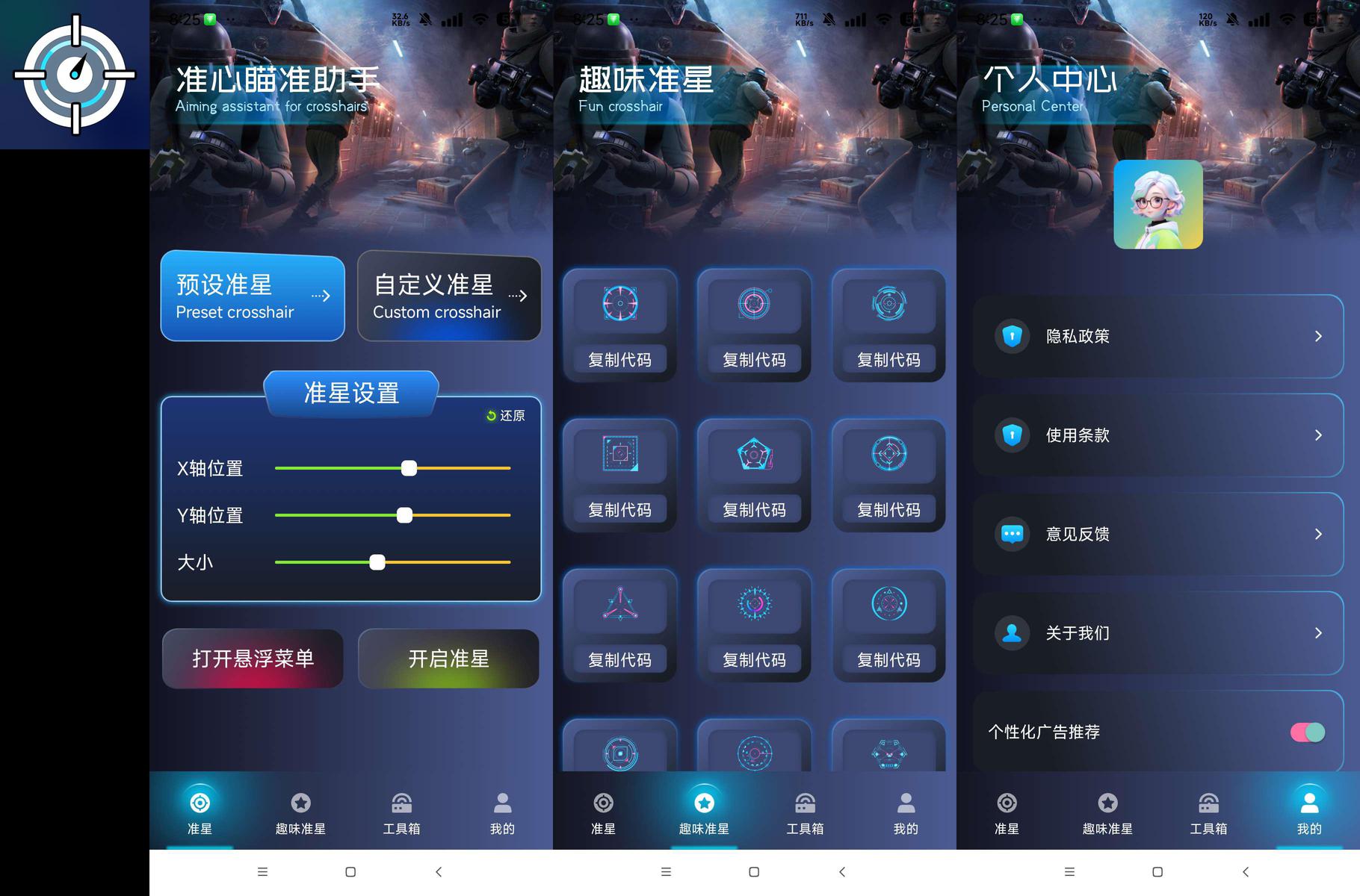 【应用简介】一款准心瞄准助手App,FPS游戏必备,助你精准射击! 提升游戏射击精度,多种准心样式,自定义设置,助你轻松击败对手,成为游戏高手! 简单易用,流畅稳定,让你在游戏中更胜一筹!(解锁去广告)