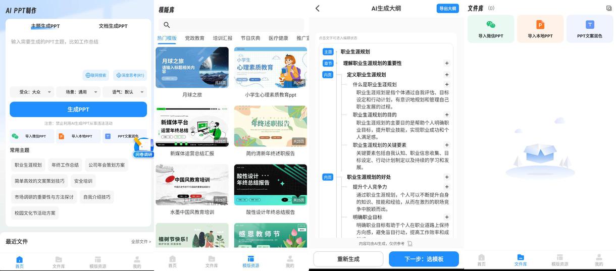 提供“热门主题”推荐,实时更新行业热点模板(如大学生职业规划、季度业绩分析等)。