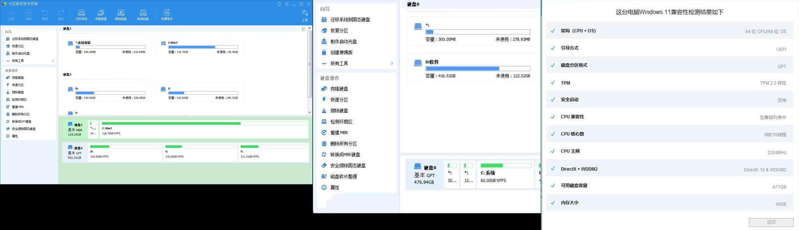 4.单文件精简版保留功能:磁盘测速、磁盘整理、Win11检查工具