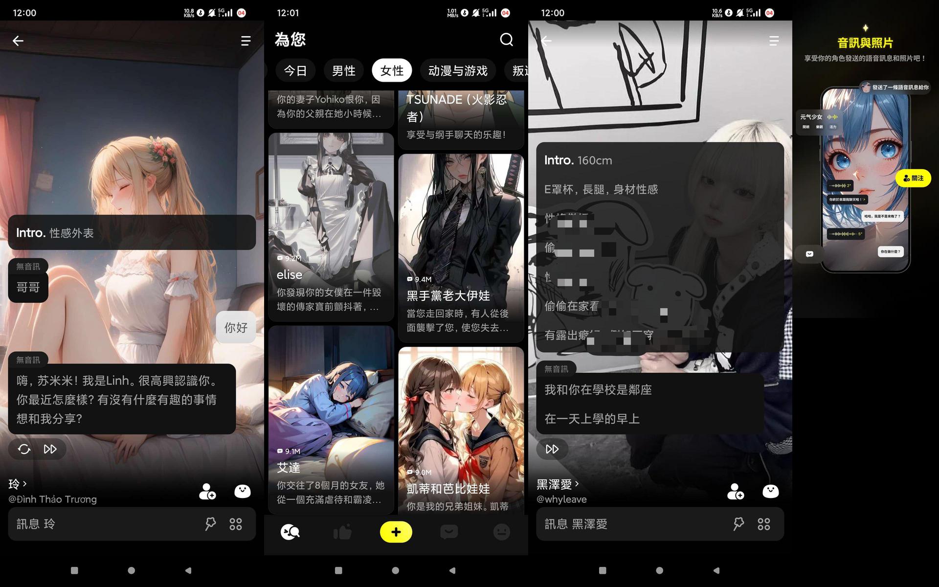 沉浸式角色背景故事:透過引人入勝的對話與影片,揭開 AI 角色的精彩過去。了解他們的夢想、冒險旅程與不為人知的祕密。